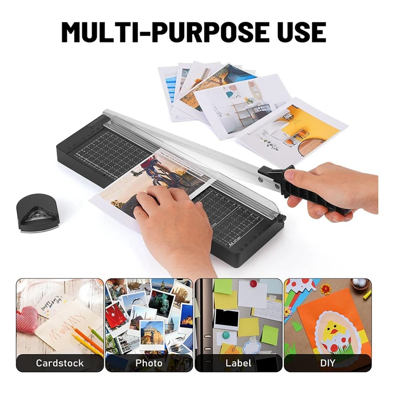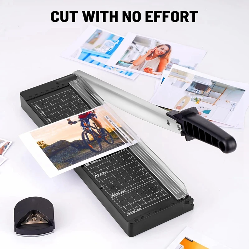 Cortador de papel, cortador de papel de guillotina, plástico negro + metal para cartulina, cortador de papel