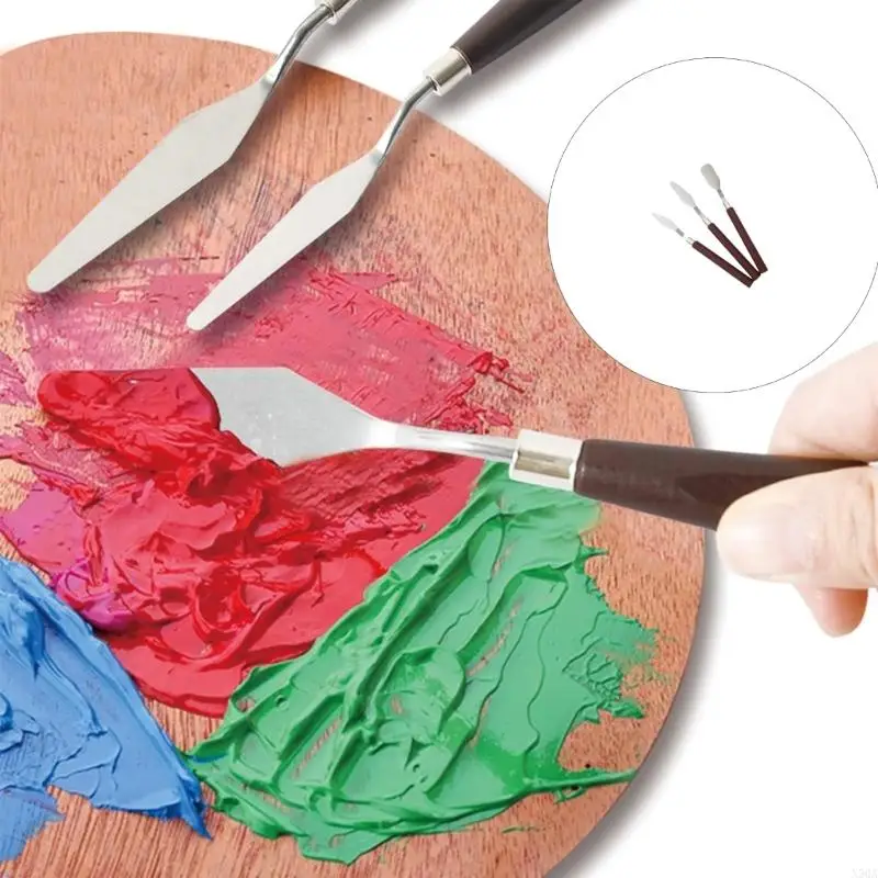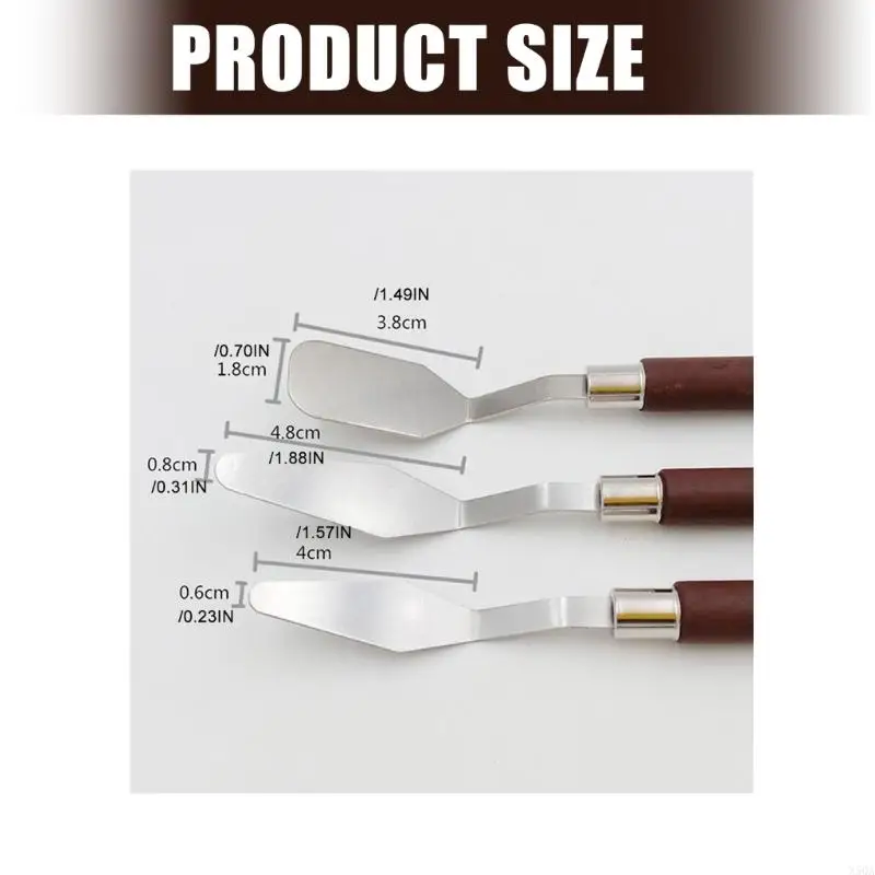 Este juego de múltiples herramientas de pintura incluye tres hojas distintas de acero inoxidable con bordes pulidos para una mezcla suave de los pigmentos.