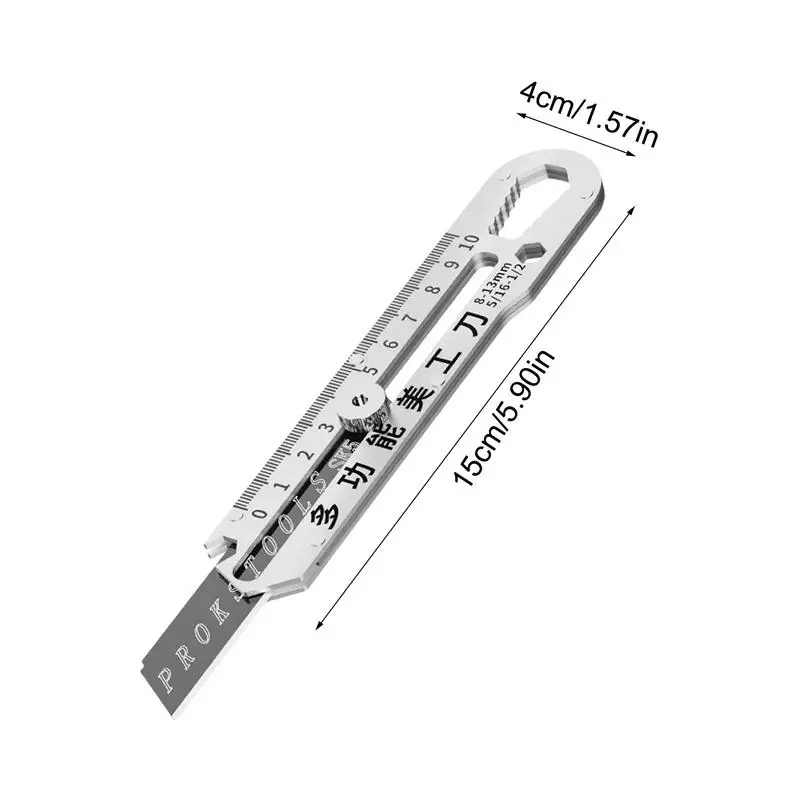 3. Múltiples funciones: con un diseño multifuncional, el cortador de caja hace que cualquier proyecto sea muy sencillo.Equipado con funciones como martillo de seguridad, abridor de botellas, doblador de tubos, destornillador m4/m6/m8/m10, regla, etc., experimente una eficiencia mejorada como nunca antes