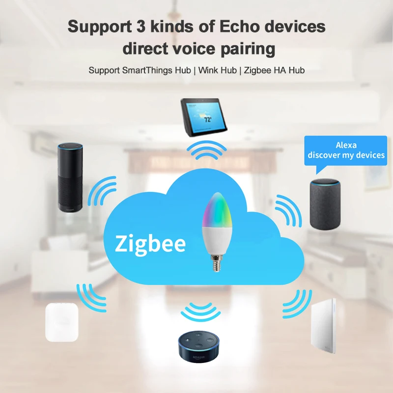 Comprar CORUI-bombilla de vela inteligente Tuya Zigbee E14 E12, lámpara LED RGBCW de 5W, Control remoto Smartthings, Compatible con Alexa y Google Home