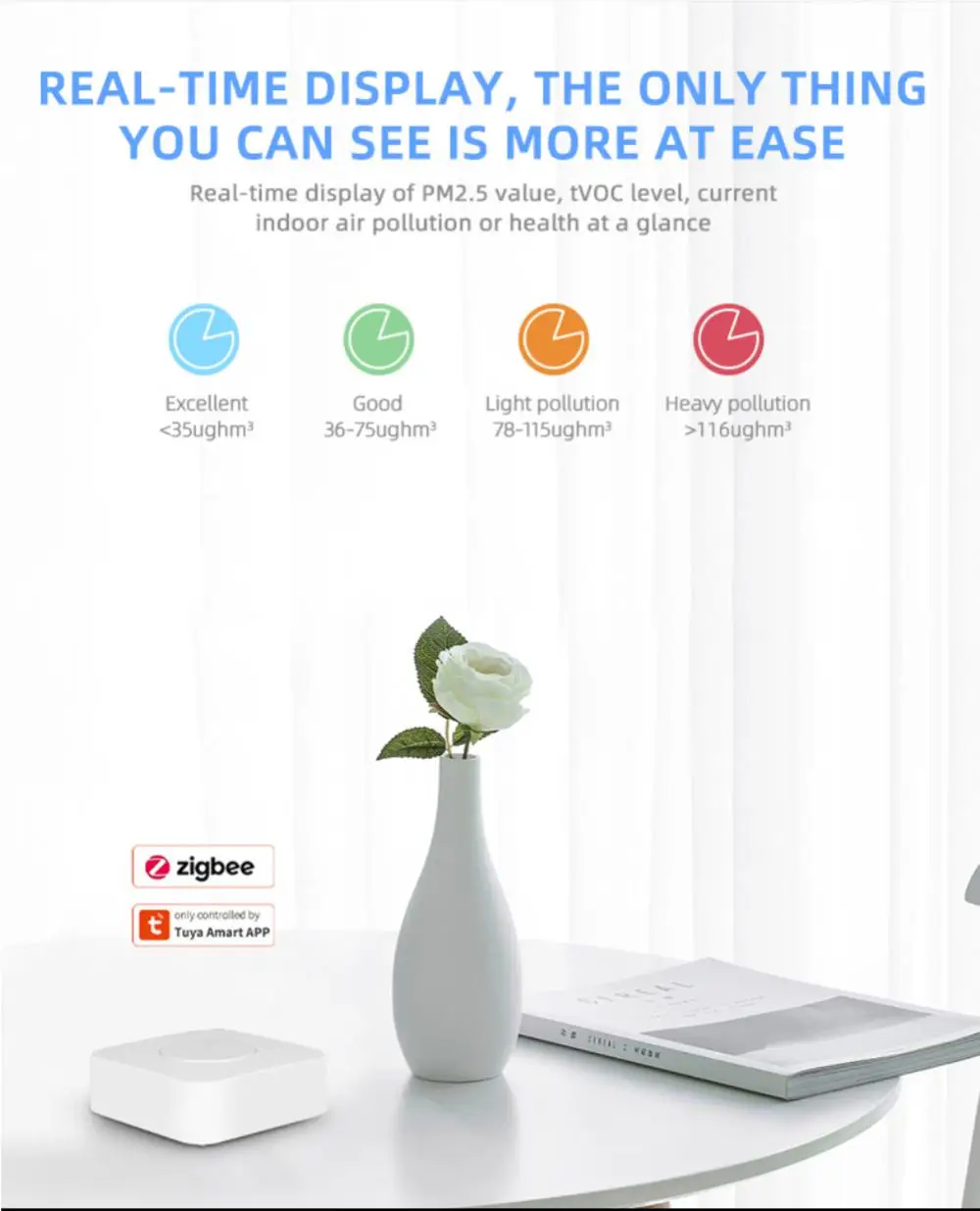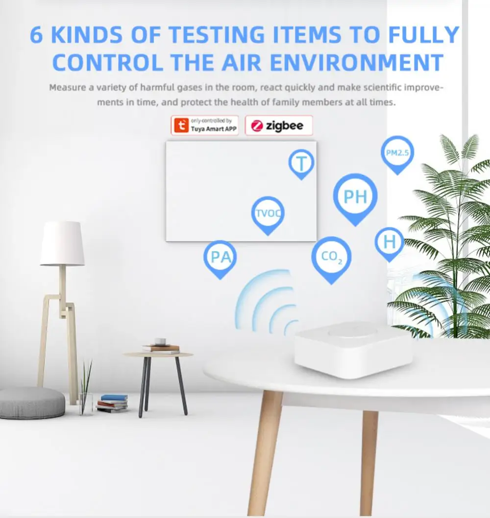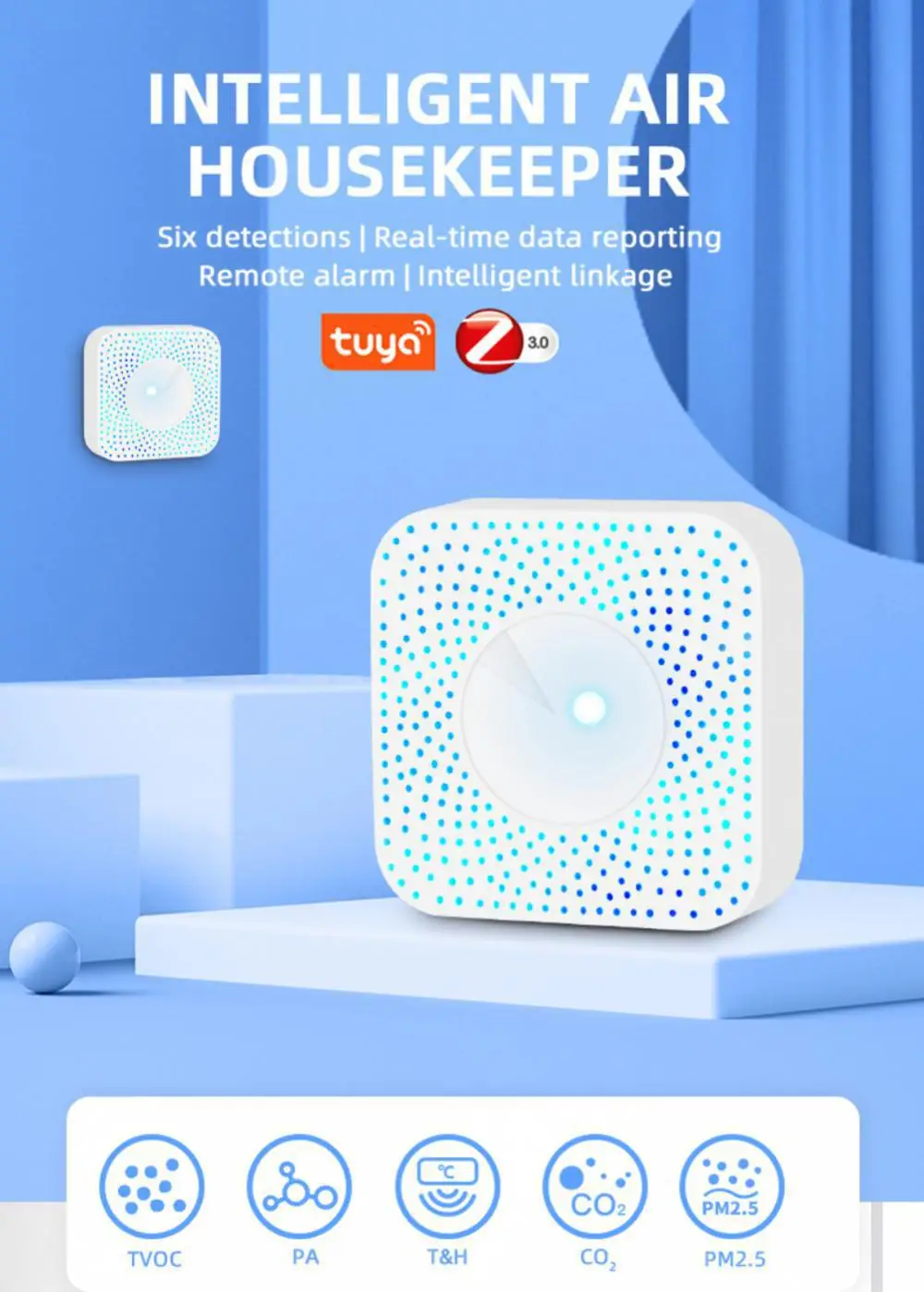 Comprar CORUI-caja de aire inteligente Tuya Zigbee, Detector de alarma con Sensor PM2.5, formaldehído, VOC, CO2, temperatura, humedad, 6 en 1