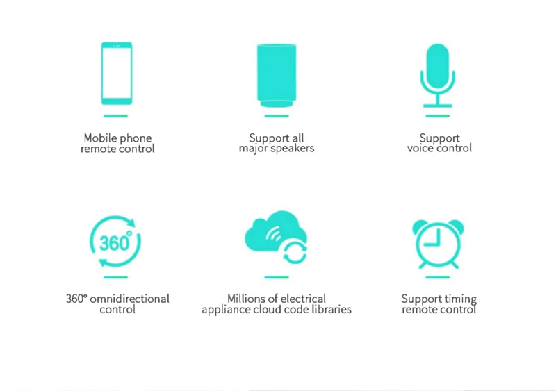 Admite más de 50.000 dispositivos controlados por IR (solo 38KHz IR, sin RF), incluyendo su aire acondicionado, TV, TV Box, DVD, Audio, grabadora de vídeo personal, receptor y más.