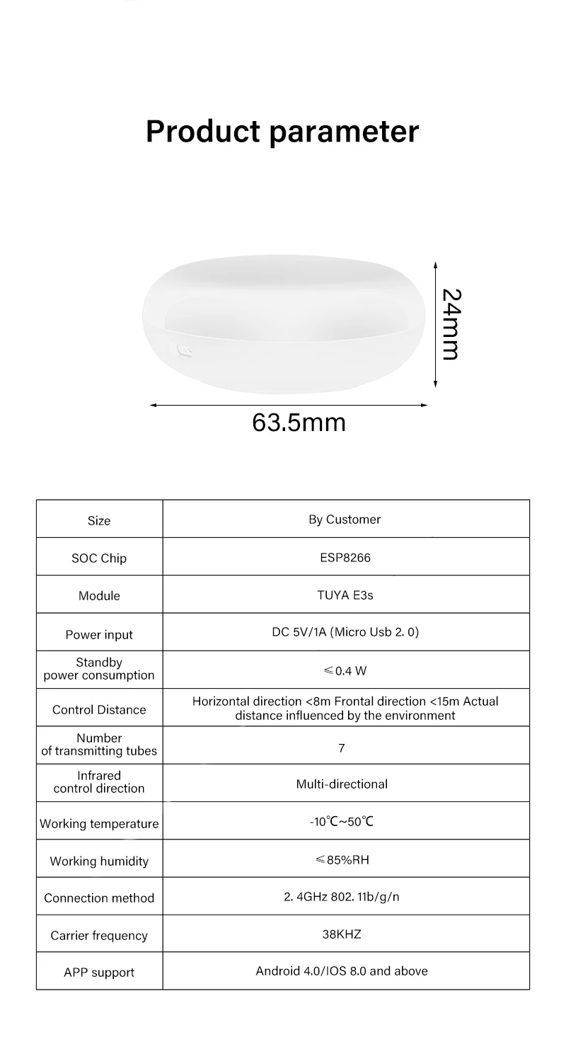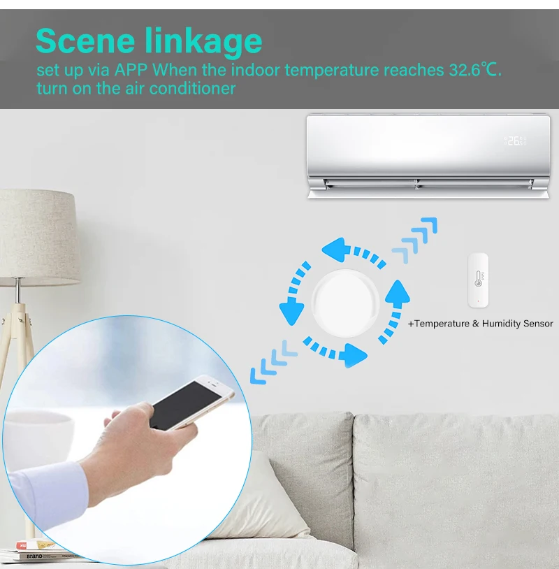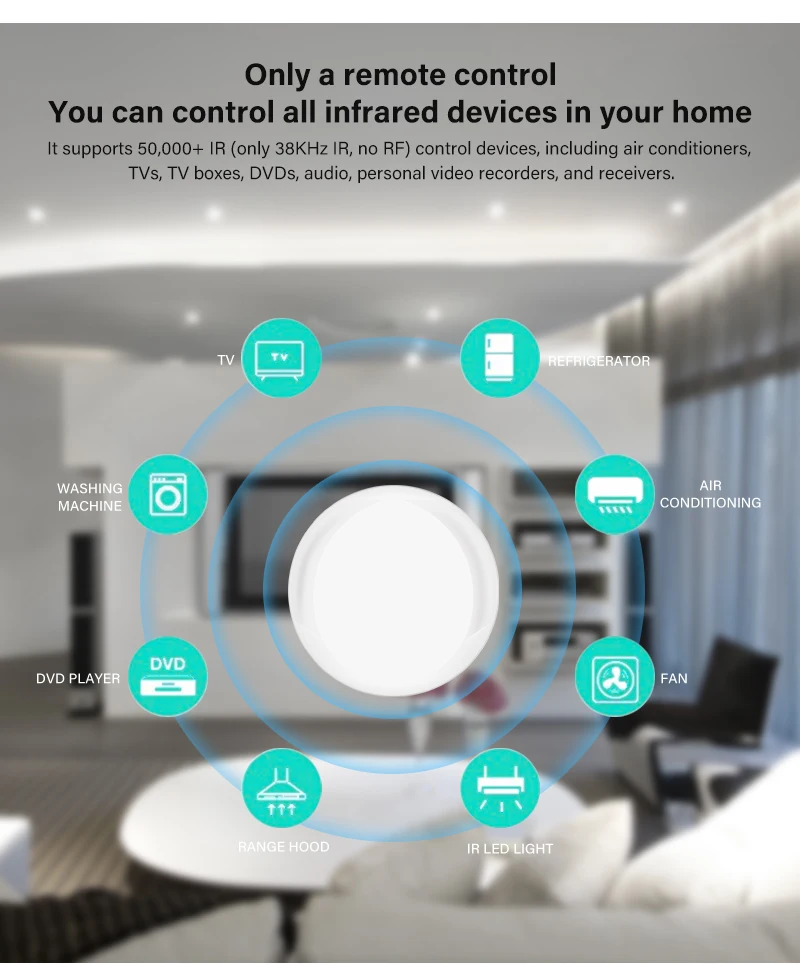 Controle los dispositivos IR con Tuya Smart App o Smart Life App en cualquier lugar y en cualquier momento. Convierte tus dispositivos domésticos básicos en dispositivos inteligentes y haz la vida más inteligente y cómoda.
