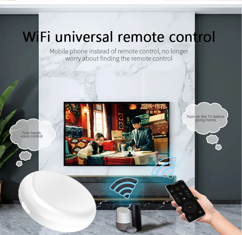 Compatible con Alexa/Echo, Google Home para controlar por voz su TV, STB, aire acondicionado y ventiladores. El dispositivo solo admite WiFi de 2,4G.