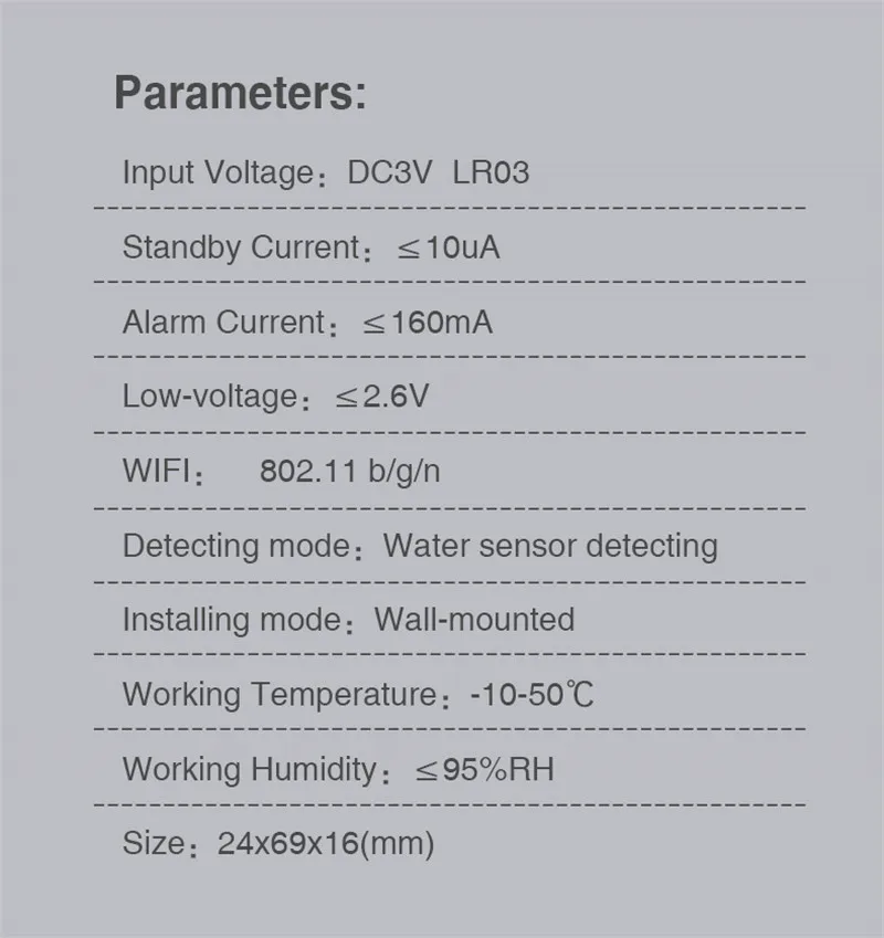 Póngalo en la cocina, sala de estar o baño,Una vez que se detecte una fuga de agua o un nivel de agua demasiado alto, se enviará una notificación de alarma a través de la aplicación; también se puede usar junto con otras alarmas.