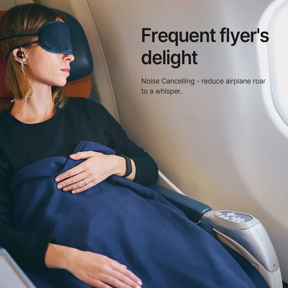 Cancelación de ruido significativa para viajes, trabajo y cualquier lugar intermedio. La tecnología avanzada de cancelación activa de ruido reprime el ruido de la cabina del avión, el tráfico urbano o una oficina concurrida. Minimiza las distracciones para mantenerte concentrado, te permite disfrutar de tu música y aún así escuchar tu entorno.