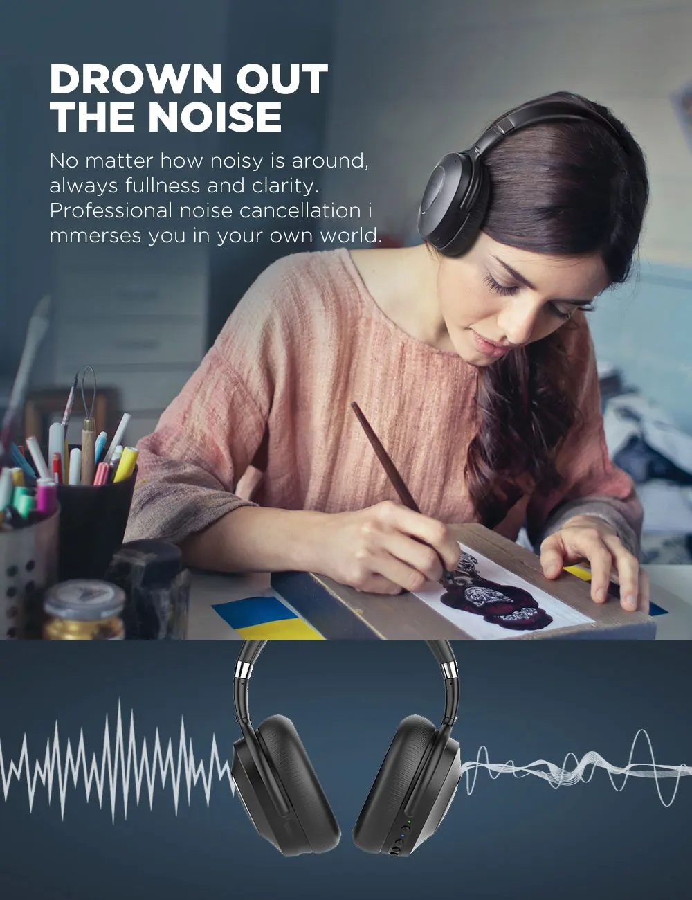 Nuestra tecnología profesional ANC reduce significativamente el ruido para ayudarte a concentrarte en lo que quieres escuchar. Y puede ajustar el sonido ambiental a su actividad para obtener la mejor cancelación de ruido entre los modos de cancelación de ruido y sonido ambiental.