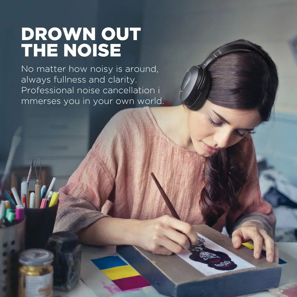 Nuestra tecnología profesional ANC reduce significativamente el ruido para ayudarte a concentrarte en lo que quieres escuchar. Y puede ajustar el sonido ambiental a su actividad para obtener la mejor cancelación de ruido entre los modos de cancelación de ruido y sonido ambiental.