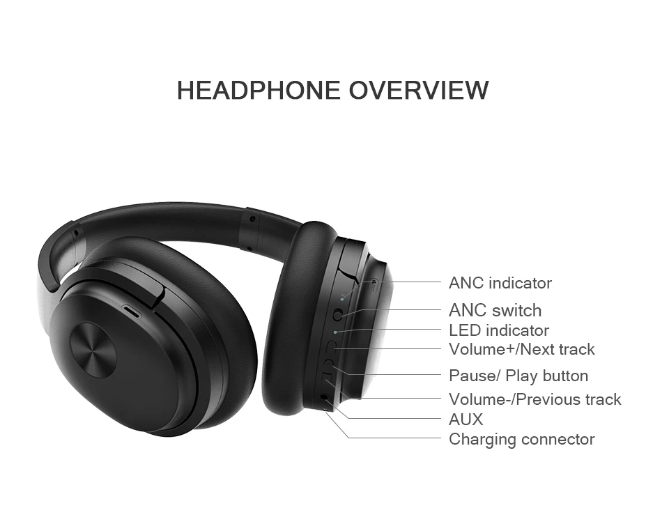 50 horas de reproducción en el modelo Bluetooth, 30 horas de reproducción en el modelo Bluetooth y ANC. Una batería integrada de 800mAh no permitirá que tus auriculares se apaguen.