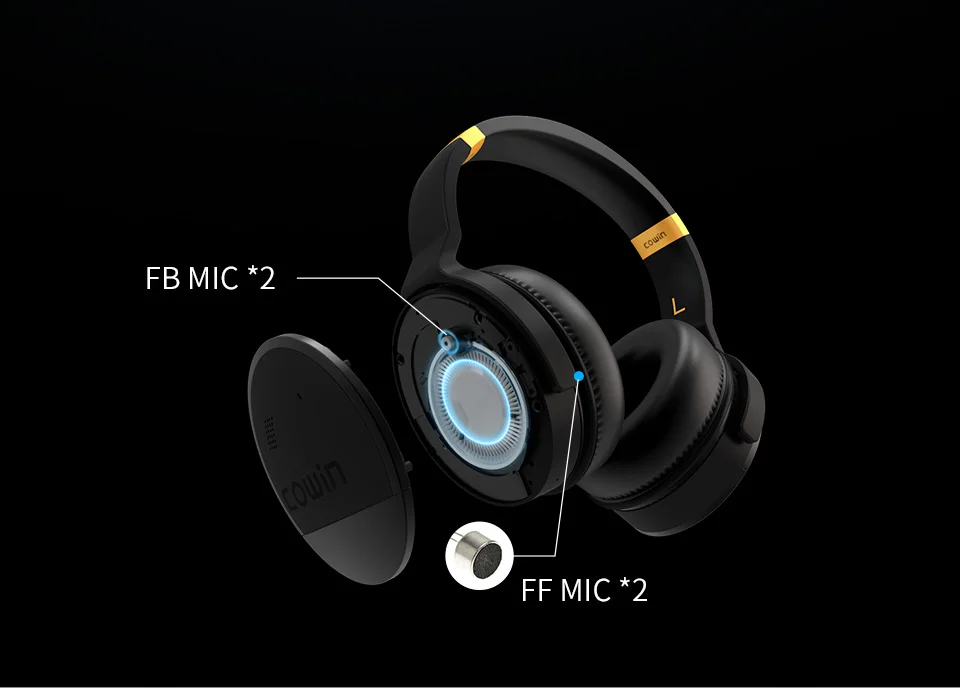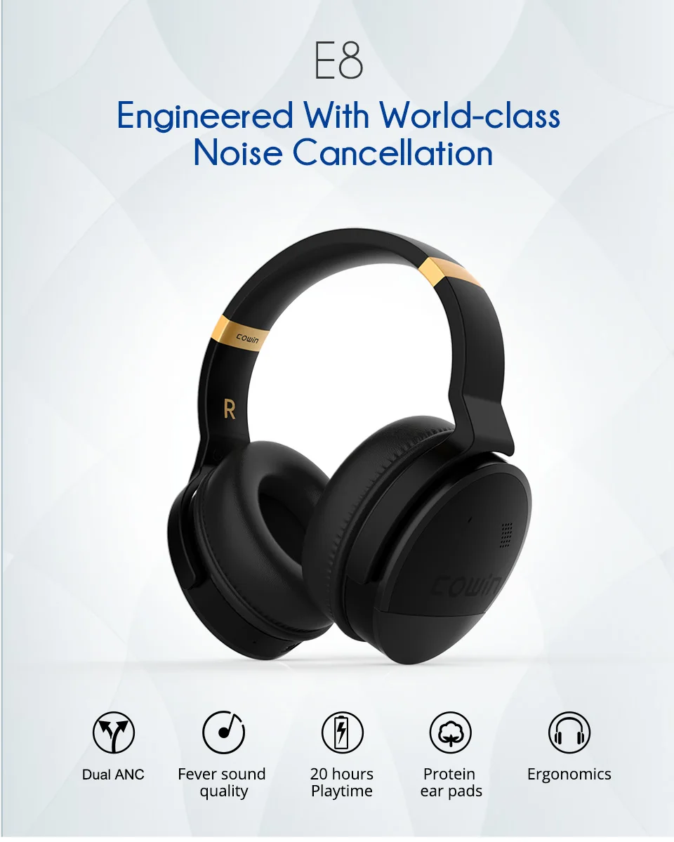 Las almohadillas suaves mejoradas, los auriculares COWIN E8 ANC son cómodos con una suavidad similar a una almohada en la diadema y las almohadillas proteicas para los oídos, mientras que los auriculares giran para un ajuste afinado.