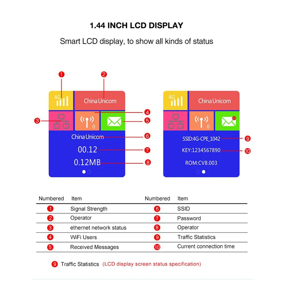 Característica:1. Alta velocidad:El enrutador WiFi 4G proporciona una velocidad de transmisión inalámbrica de hasta 150Mbps.