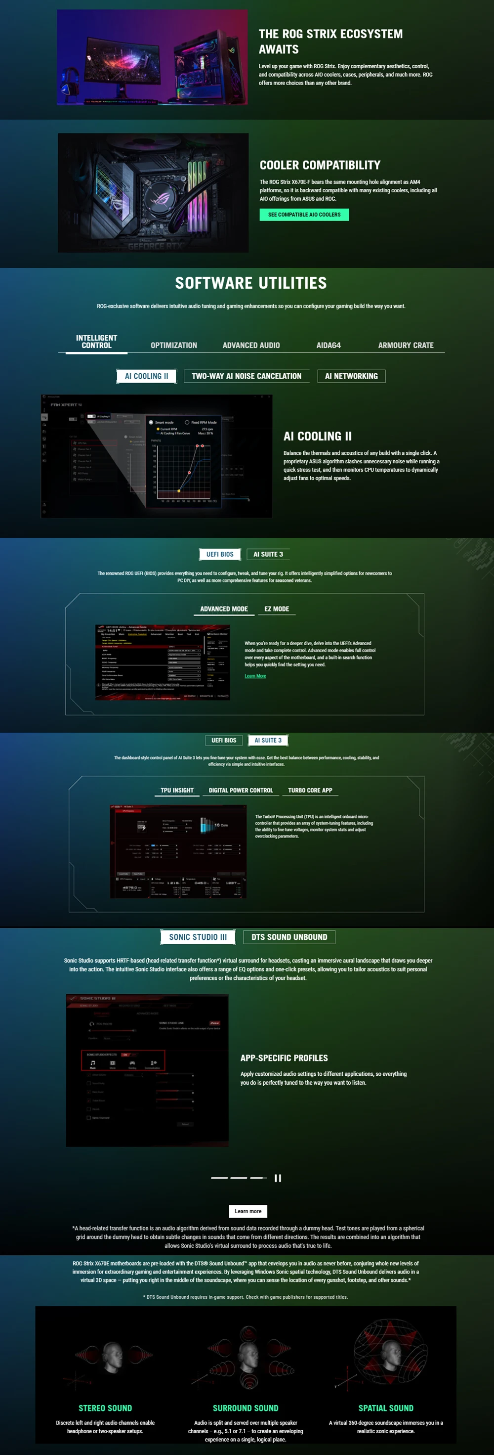 Audio líder en la industria: ROG SupremeFX ALC4080 con amplificador Savitech SV3H712, junto con DTS Sound Unbound y Sonic Studio III.