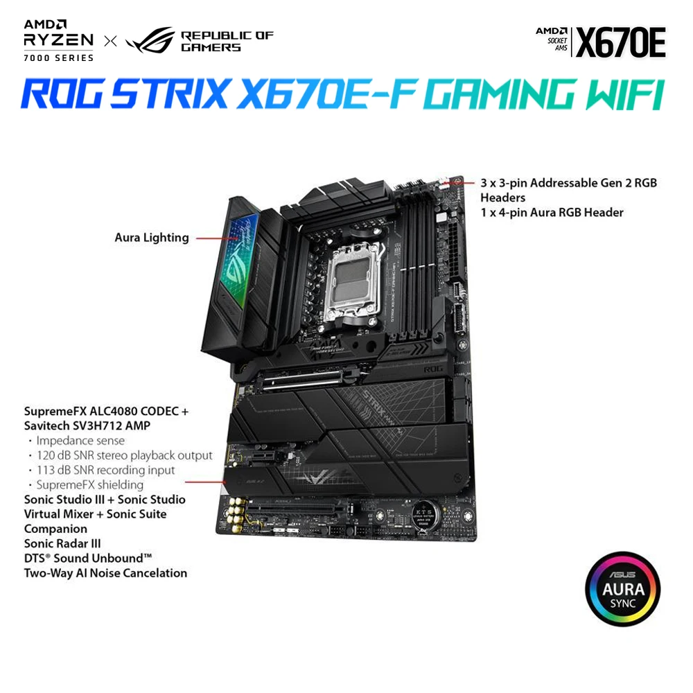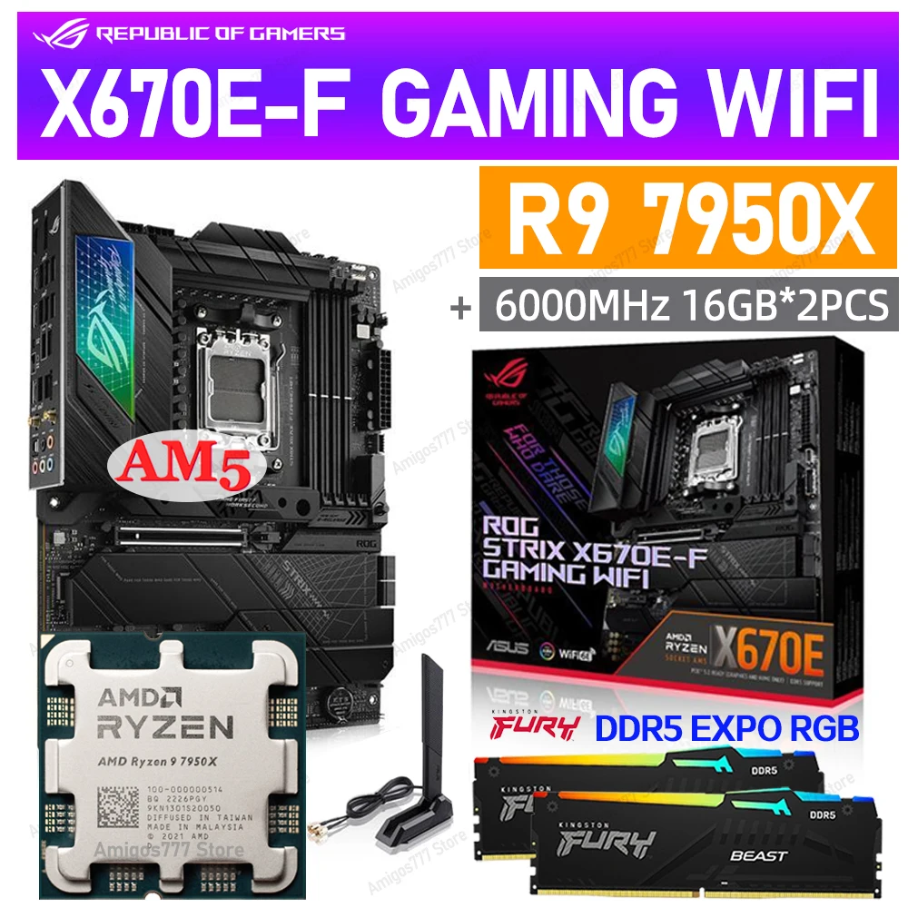 AM5 CPU RYZEN 9 7950X con traje de memoria de placa base ASUS ROG STRIX X670E-F GAMING WIFI DDR5 + Kingston 6000Mhz 32GB EXPO RGB PCIE 5,0 M.2 AMD X670 Nuevo
