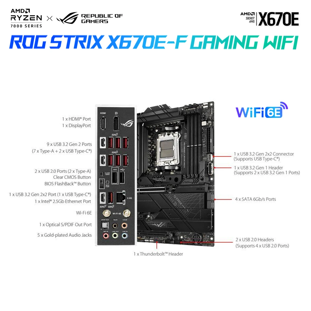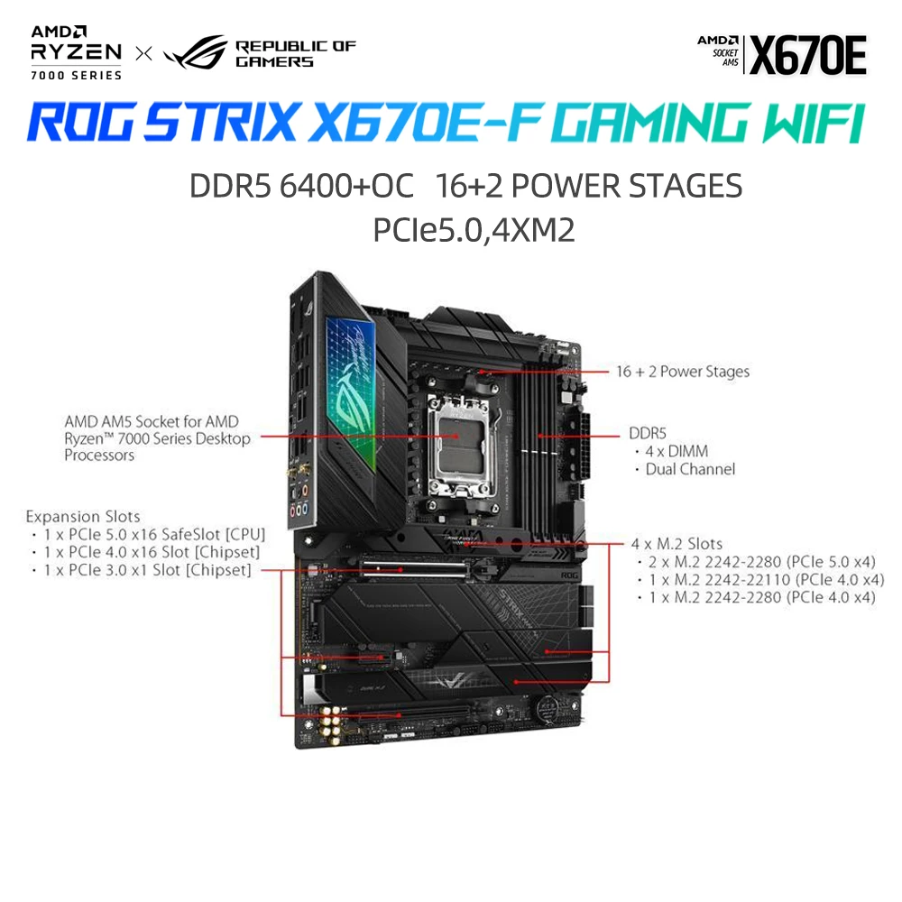 ASUS ROG STRIX GAMING WIFI Placa base Socket AM5(AMD Ryzen™Procesador de escritorio de la serie 7000) Ryzen 5 7600X R7 7700X R9 7900X 7950X CPU Procesador Asgard Memoria RAM DE LA DDR5-4800 FURY Beast DDR5 8GB 16GB 32GB 4800 5600 6000 MHz Dragon RTX 2060 3060 TI Ryzen 5 5600 5800x 3D GIGABYTE GA X670 AORUS ELITE AX MSI MPG X670E CARBONO WIFI AMD X670 MSI PRO WiFi Crucial RAM DDR5 4800MHz 16GB 32GB Corsair Vengeance DDR5 4800MHZ