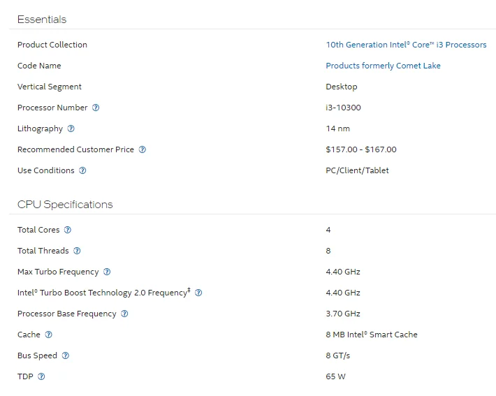 Comprar CPU Core i3 3,7 GHz 8M Cache Comet Lake 4 Core 65W procesador de escritorio SRH3J i3-10300
