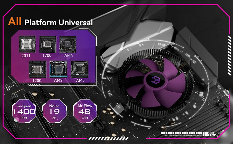 CPU Enfriador refrigerado por aire Procesador de PC Ventilador AM4 para Intel LGA 1366 1700 1200 1150 1151 1155 2011 X79 X99 AM3 AM4 AM5