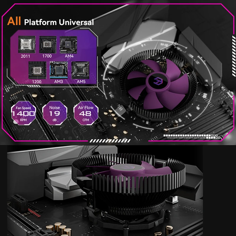 CPU Enfriador refrigerado por aire Procesador de PC Ventilador AM4 para Intel LGA 1366 1700 1200 1150 1151 1155 2011 X79 X99 AM3 AM4 AM5