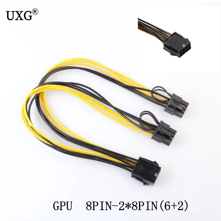 Comprar Cpu o gpu 8 pines a 2*8 pines (6 + 2) tarjeta gráfica para minero doble PCI-E PCIe 8 pines, Cable divisor de fuente de alimentación 21cm