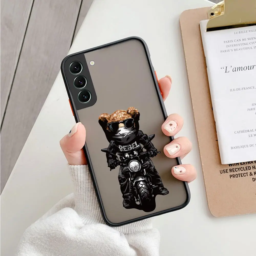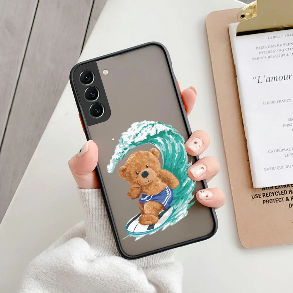 Funny Teddy Bear Mascot Matte Clear Silicone Cqoue para Samsung S23 Ultra Case Galaxy S20 S21 S22 FE Ultra 5G S10 Lite S8 S9 Plus Funda Shell Capa
