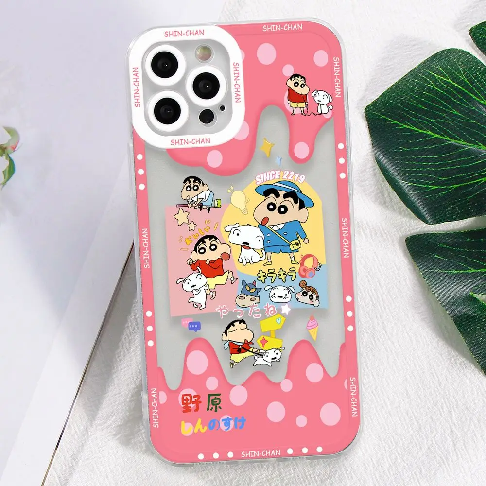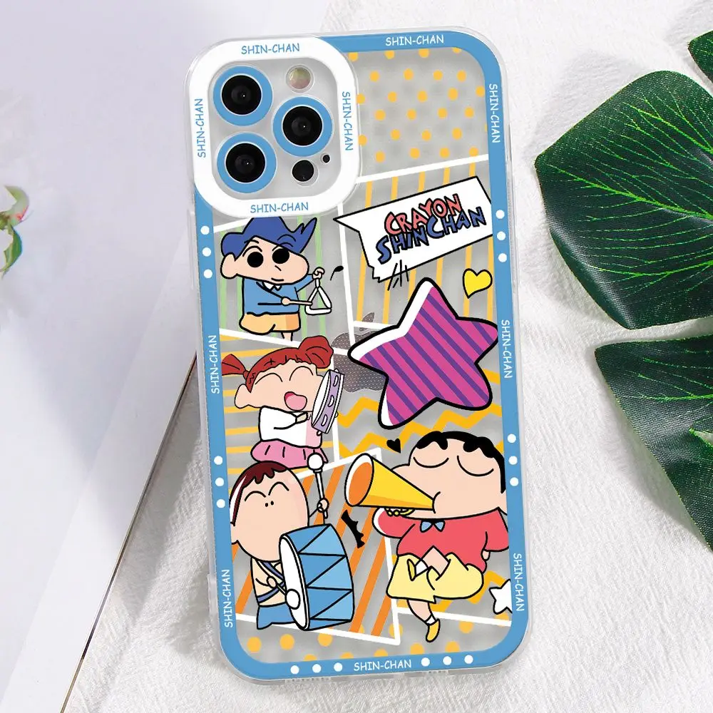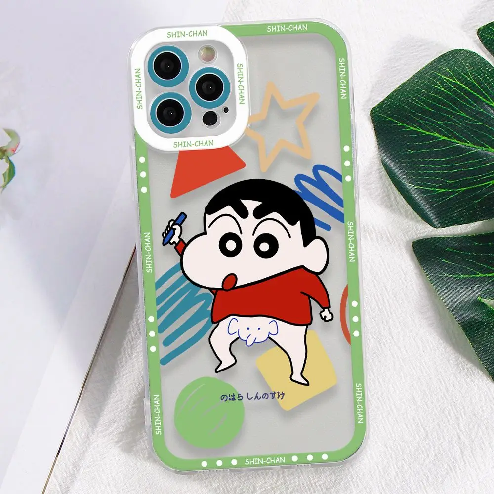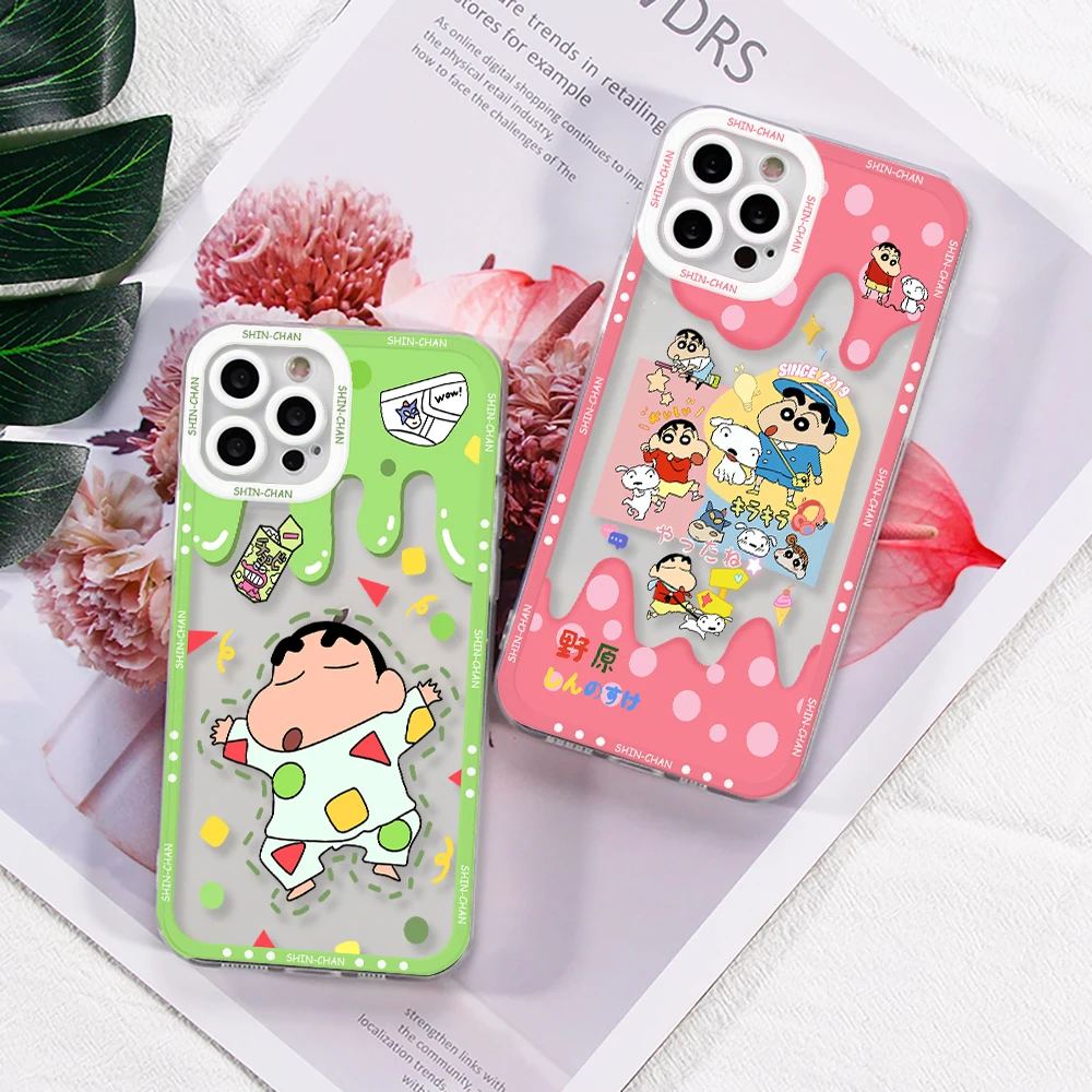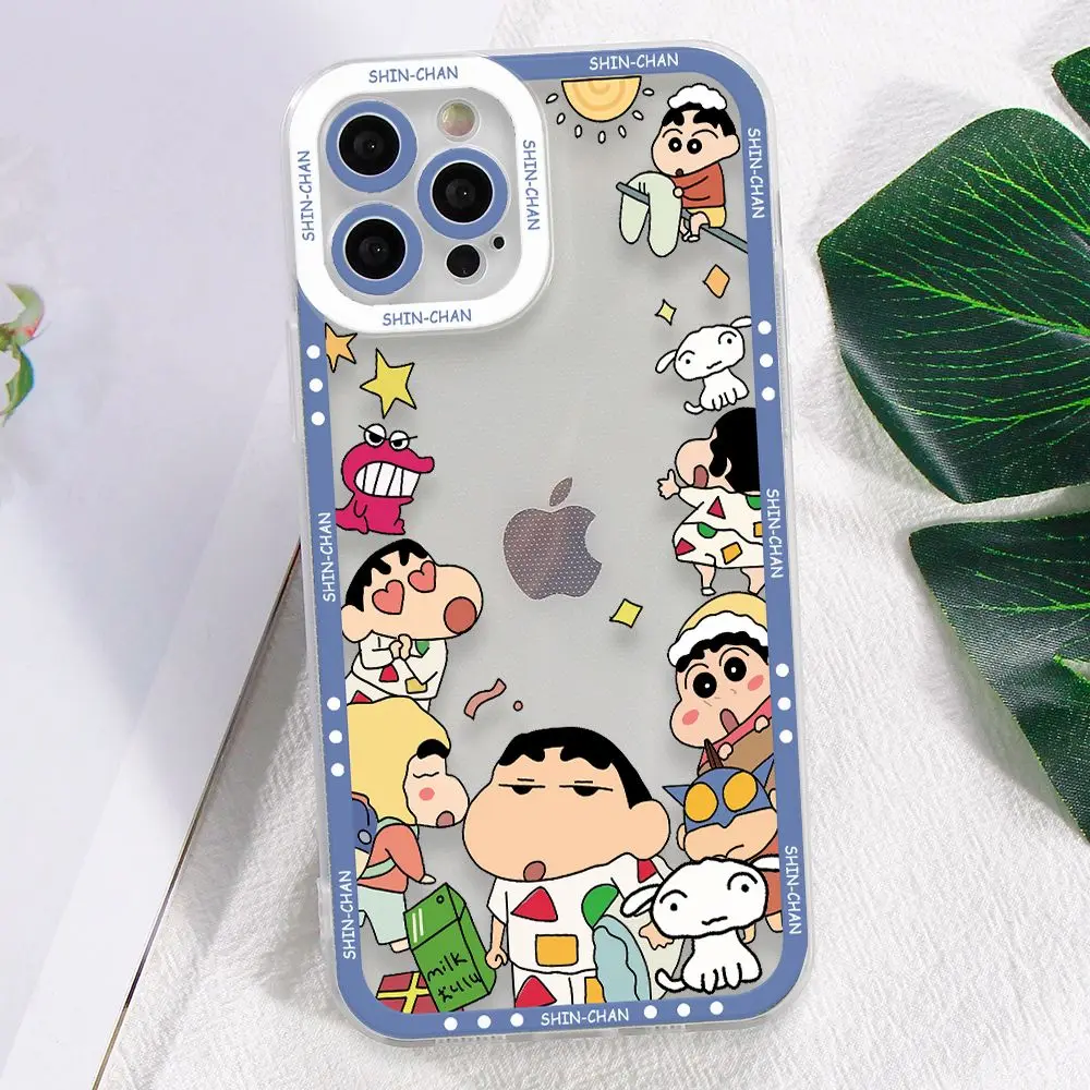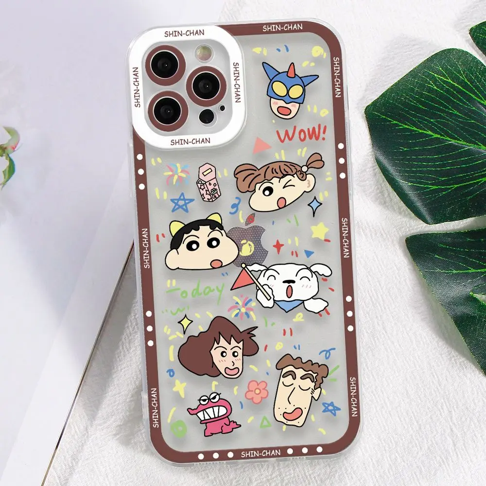 Crayons Shin-chans Phone Case para Xiaomi Redmi 13C, 12C, 10C, 9C, A3, Note 13, 12, 11, 10, 9 Pro Plus, 4G, 5G, Border Print, Clear Soft Cover