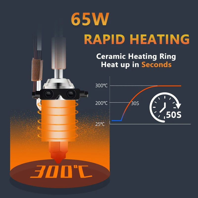 *Alta tasa de calentamiento: Logre velocidades de impresión más rápidas con la alta tasa de calentamiento de este hotend, sin sacrificar la calidad de sus impresiones.