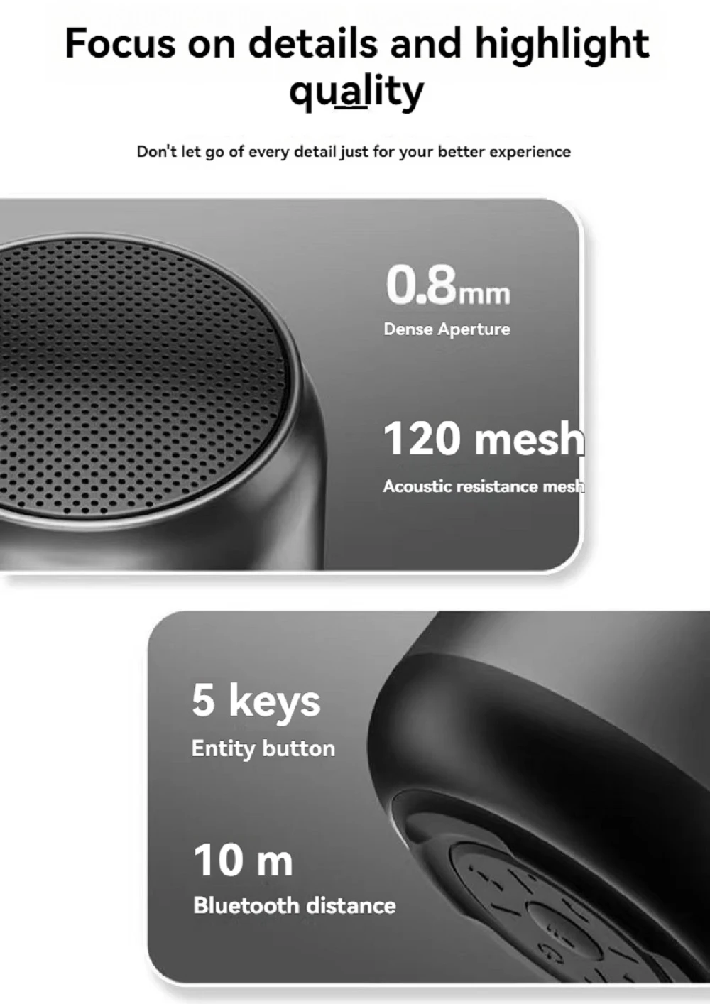 Creativo 360 ° Estéreo de alta fidelidad, Subwoofer Inalámbrico de Metal, Altavoz Bluetooth inalámbrico, reproductor de música, Mini altavoces portátiles para exteriores y hogar