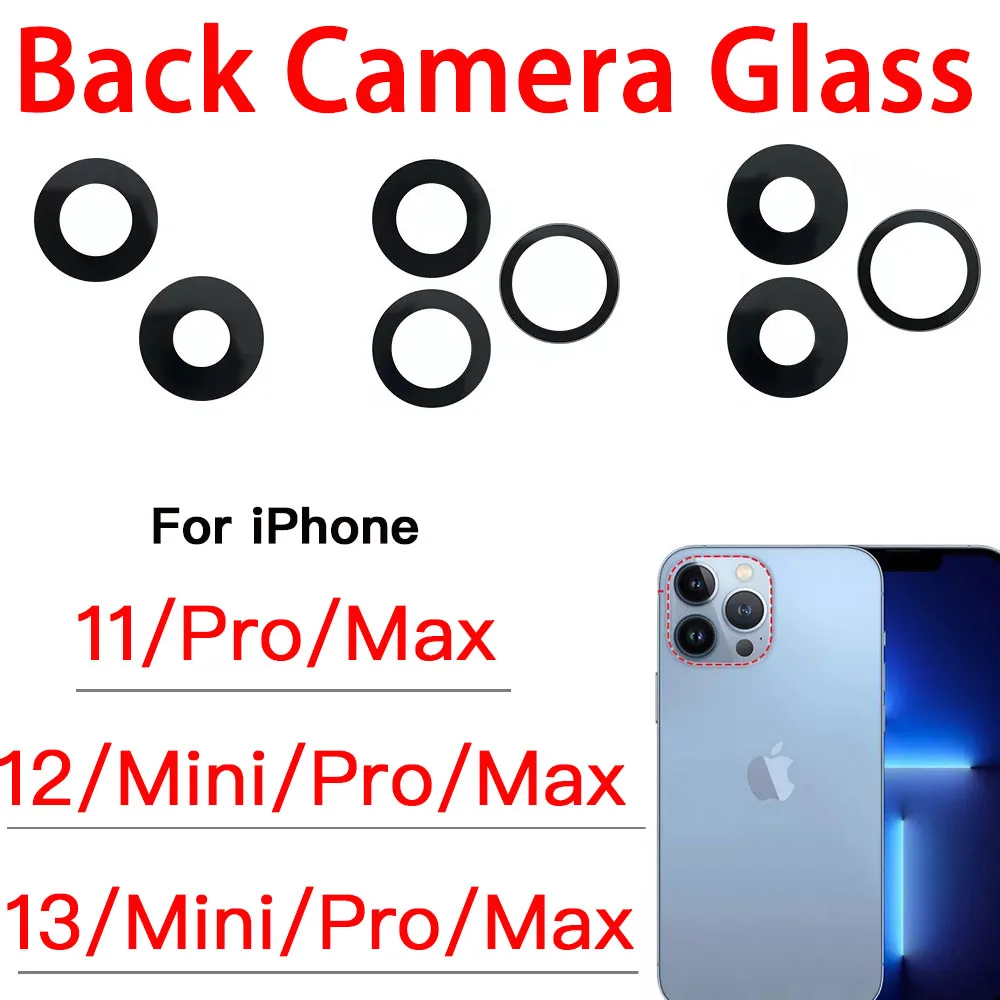 Comprar Cristal de cámara trasera con adhesivo para iPhone 7, 7P, 8 Plus, X, XR, XS, 11, 12, 13, Mini Pro Max, repuesto
