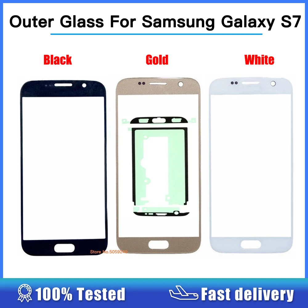 Nuevo vidrio exterior para Samsung Galaxy S7 G930 G930F pantalla táctil lente exterior de vidrio frontal con adhesivo para Samsung S7 reemplazo