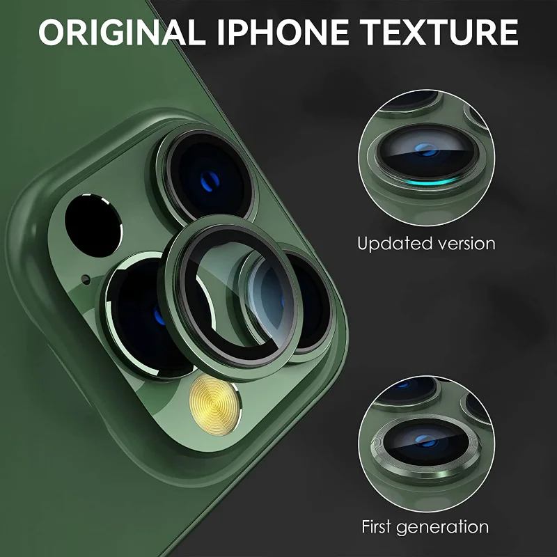 Comprar Cristal de protección de lente de cámara para iPhone 14 13 12 11 Pro Max, Protector de anillo de Metal para iPhone 12 13 Mini 14Plus 14Pro Max, película