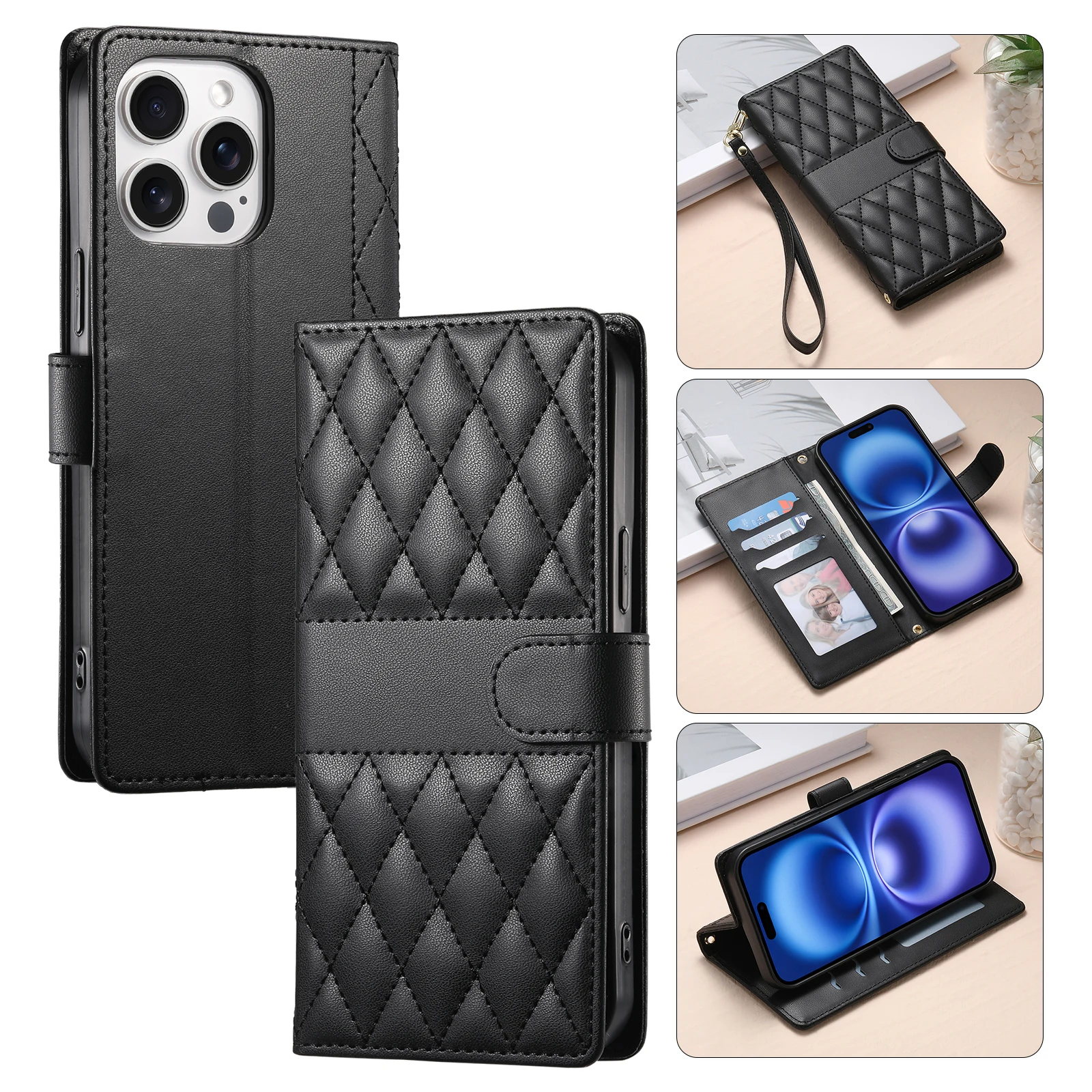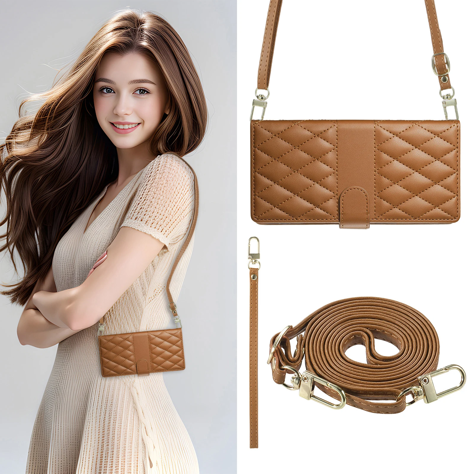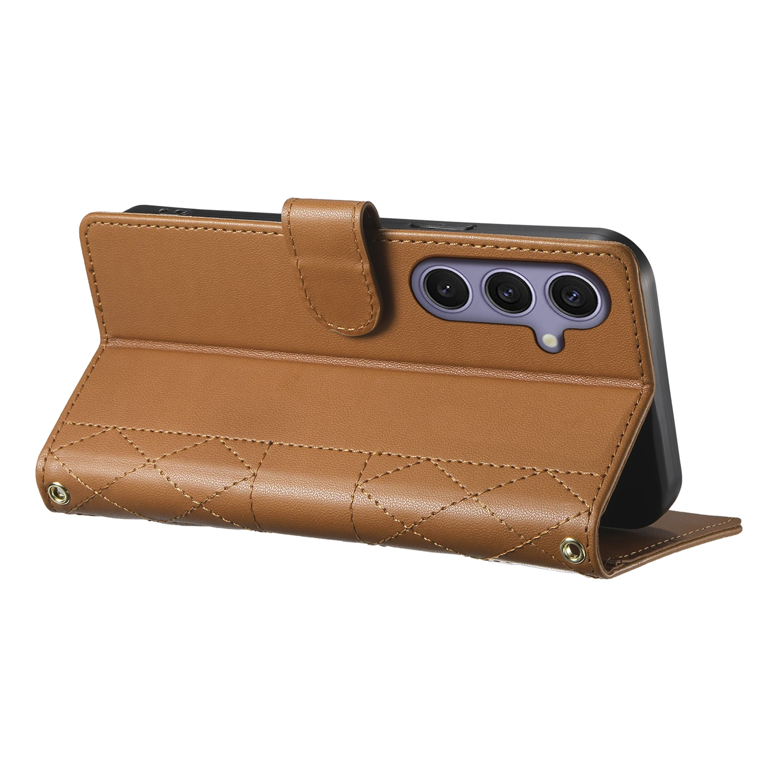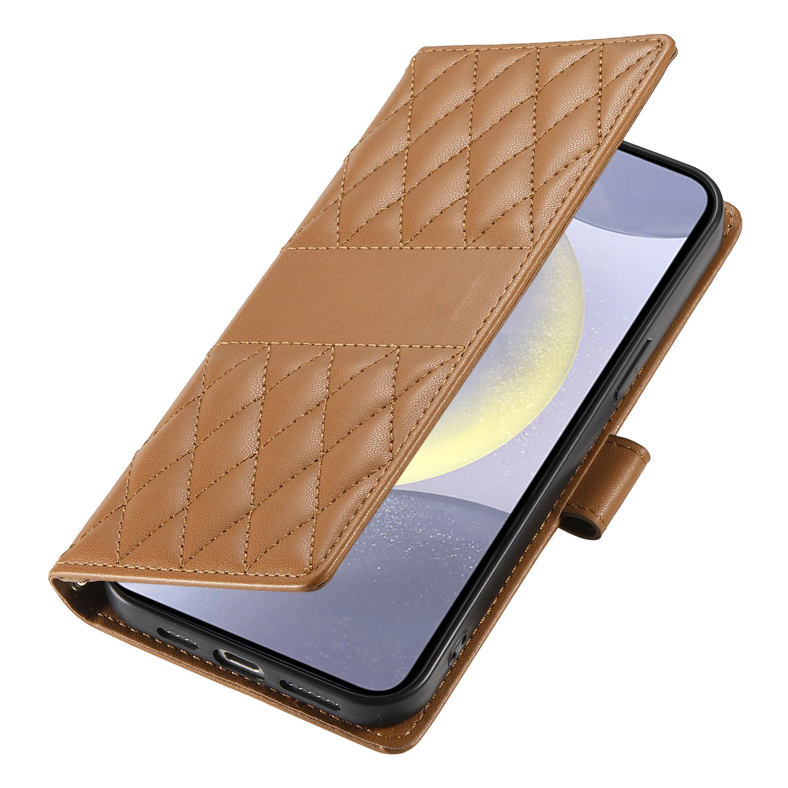 Comprar Crossbody Card Solt Wallet Leather Case For Samsung Galaxy S25 Ultra A16 A36 A56 A55 A15 S24 Plus S23 FE Grid Lanyard Flip Cover