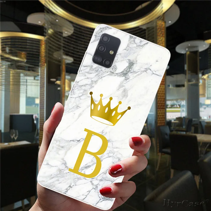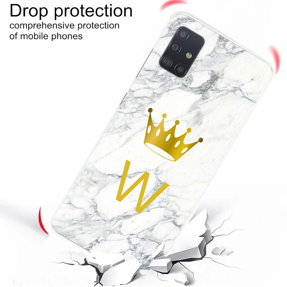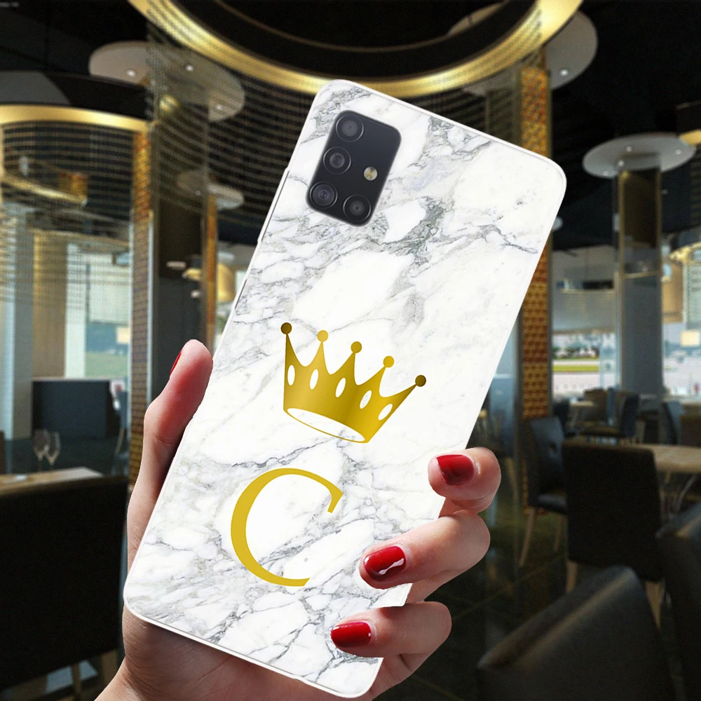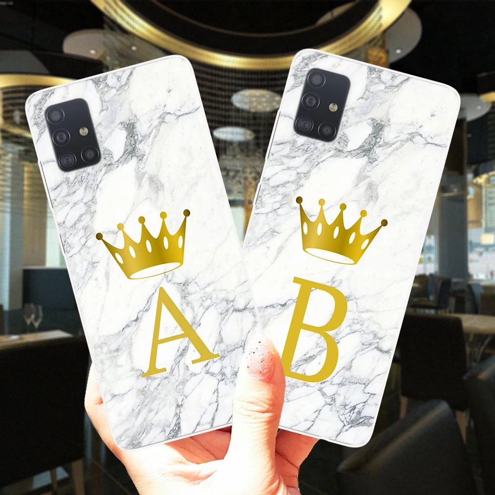 Funda de silicona con letras iniciales personalizadas de mármol de la Corona para Samsung A51 A71 A21S A30 A31 A40 A50 A70 A30S A50S fundas transparentes