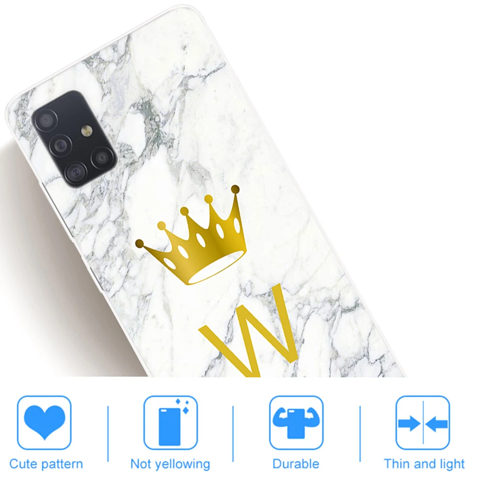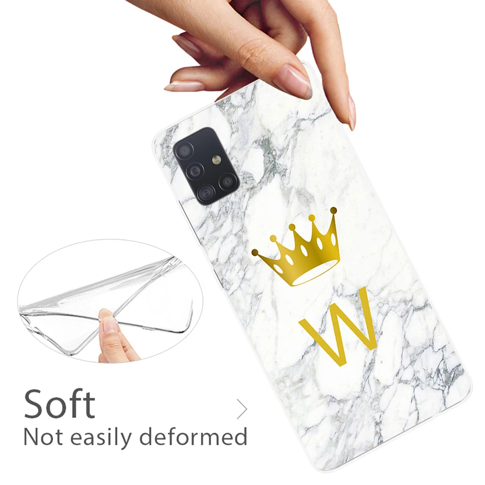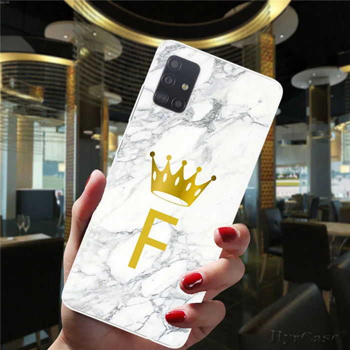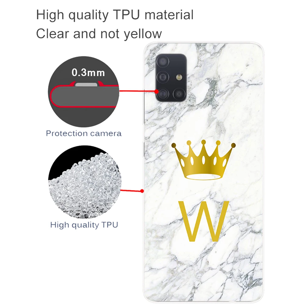 Funda de silicona con letras iniciales personalizadas de mármol de la Corona para Samsung A51 A71 A21S A30 A31 A40 A50 A70 A30S A50S fundas transparentes
