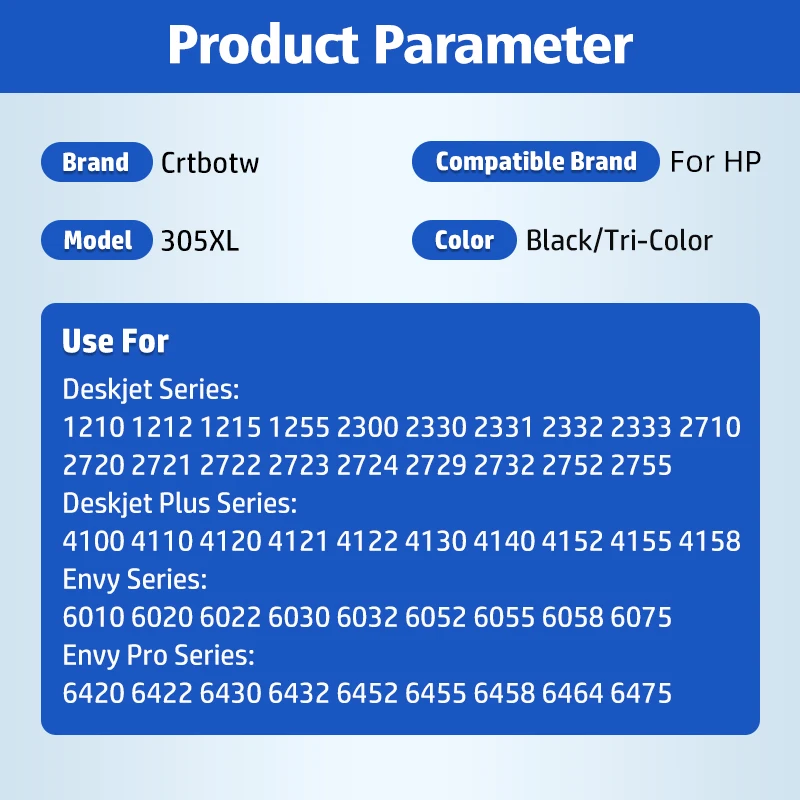 Comprar CRTBOTW 305 cartucho de tinta para HP 305XL HP305 Compatible DeskJet 2710 2755 4100 4130 Envy 6032 6020 6022 6430 impresora XL