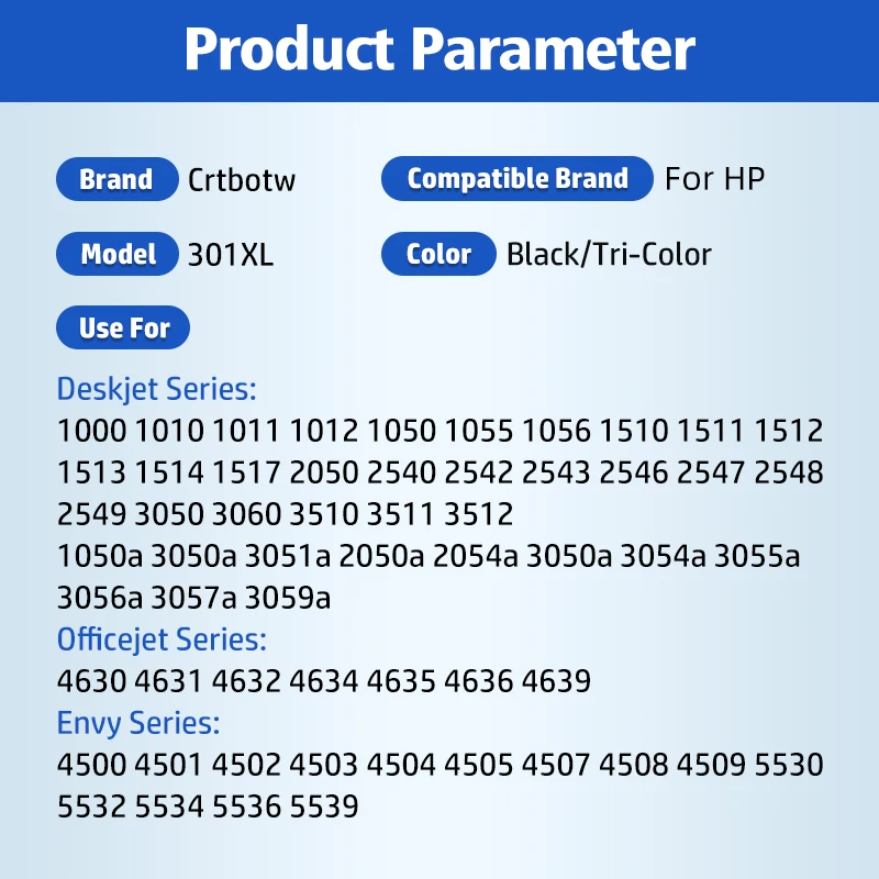 Comprar CRTBOTW-cartucho de tinta de repuesto 301 XL para impresora HP 301XL HP301, Compatible con Envy 4500 Deskjet 2630 2540 2510 1000 1050