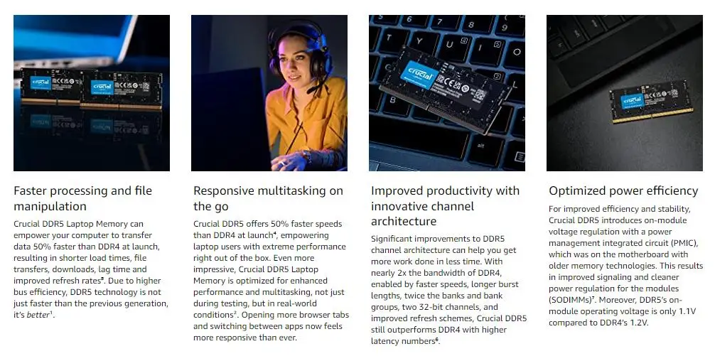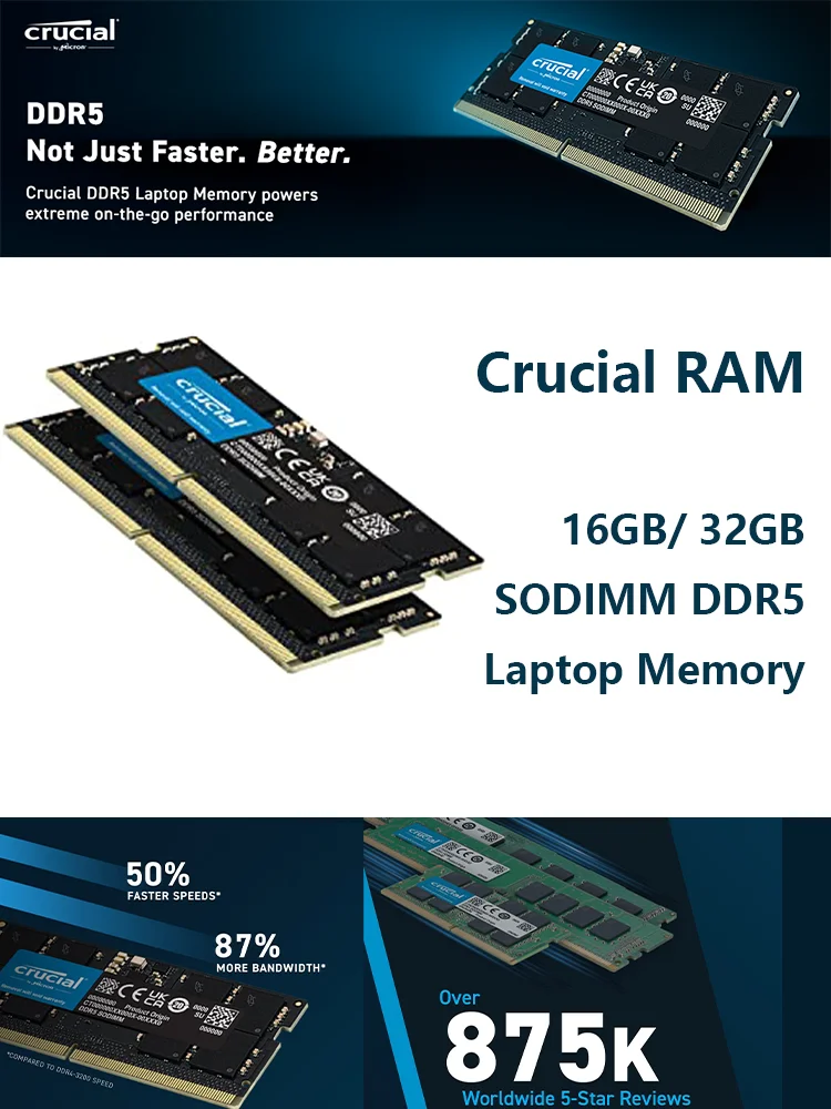 Crucial DDR5 RAM SODIMM 1,1 V para memoria portátil