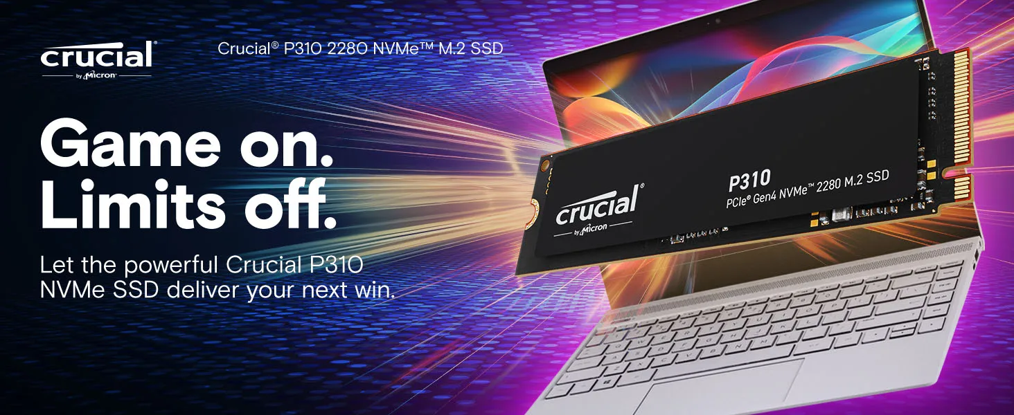Aquí está el rendimiento Gen4 de alta velocidad para los jugadores. Presentamos el SSD Crucial P310 2280 Gen4 NVMe, líder en el espacio Gen4 con lecturas/escrituras secuenciales1 de hasta 7.100/6.000 MB/s. Diseñado con la última tecnología Micron 3D NAND, Crucial P310 viene en generosas capacidades2 y ofrece compatibilidad retroceder flexible, actuando 2 veces más rápido que los SSD Gen3 y ofreciendo un rendimiento un 20% más rápido en tareas del mundo real6 en comparación con otros SSD Gen4 al iniciar Windows, iniciar aplicaciones como Adobe Photoshop e Illustrator, y trabajar con aplicaciones populares como Microsoft Excel y PowerPoint. El P310 es la solución de almacenamiento NVMe que brinda a los jugadores la ventaja que anhelan.