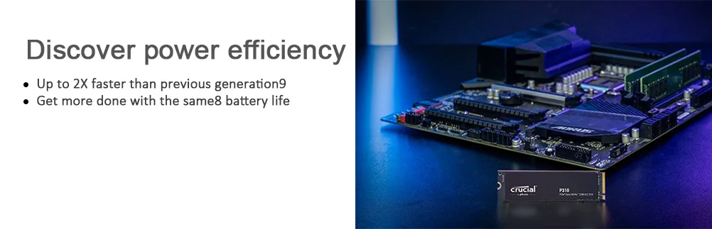 EFICIENCIA DE ENERGÍA: Proporciona hasta un 40% mejor relación rendimiento-potencia que nuestro anterior Gen4 SSD8 para que pueda hacerlo más con la misma duración de la batería.
