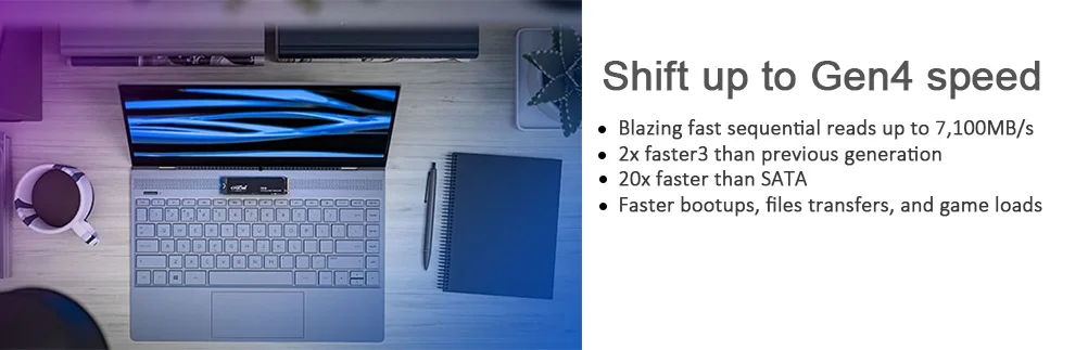 SHIFT HASTA GEN4: rendimiento Gen4 de siguiente nivel con hasta 7.100 MB/s: acelera sus arranques, transferencias de archivos y cargas de juegos sin comprometer la calidad