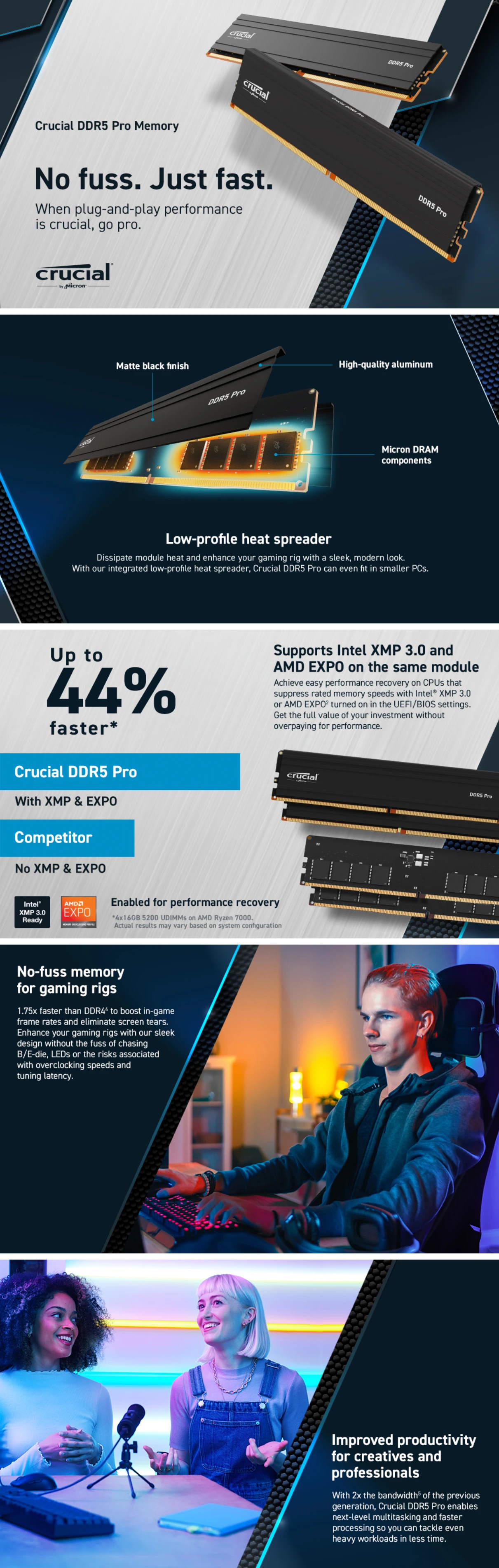 Comprar Crucial Pro RAM 32GB Kit (2x16GB) DDR5 5600MT/s (o 5200MT/s o 4800MT/s) Memoria de escritorio