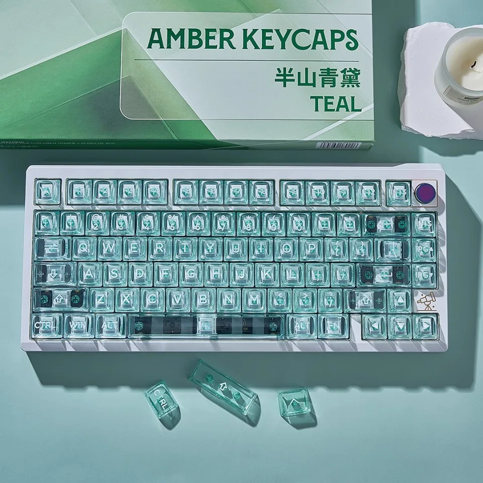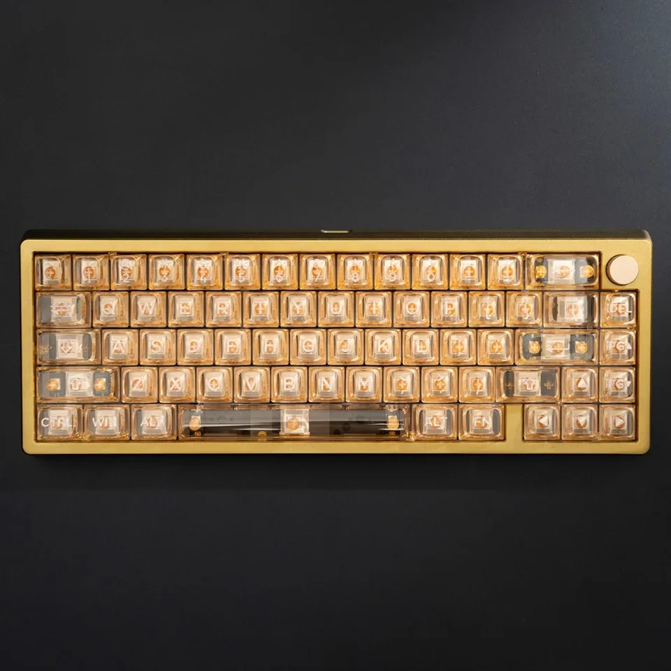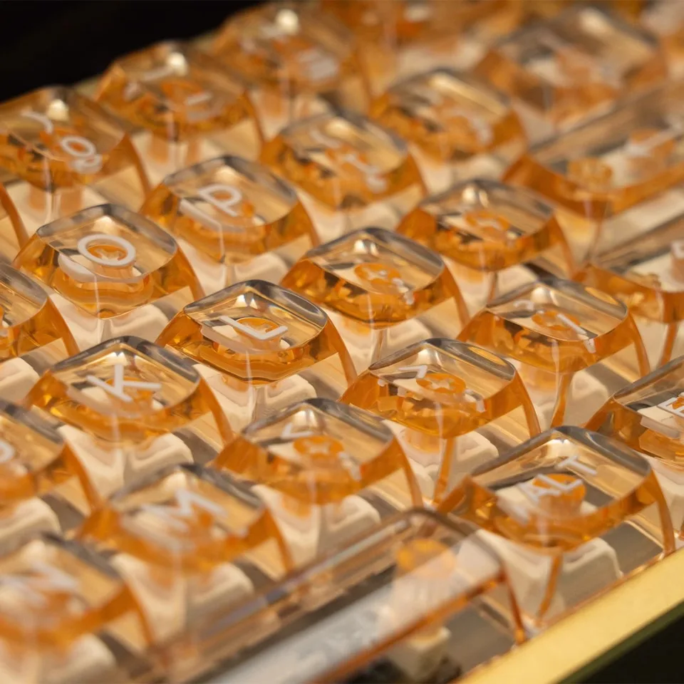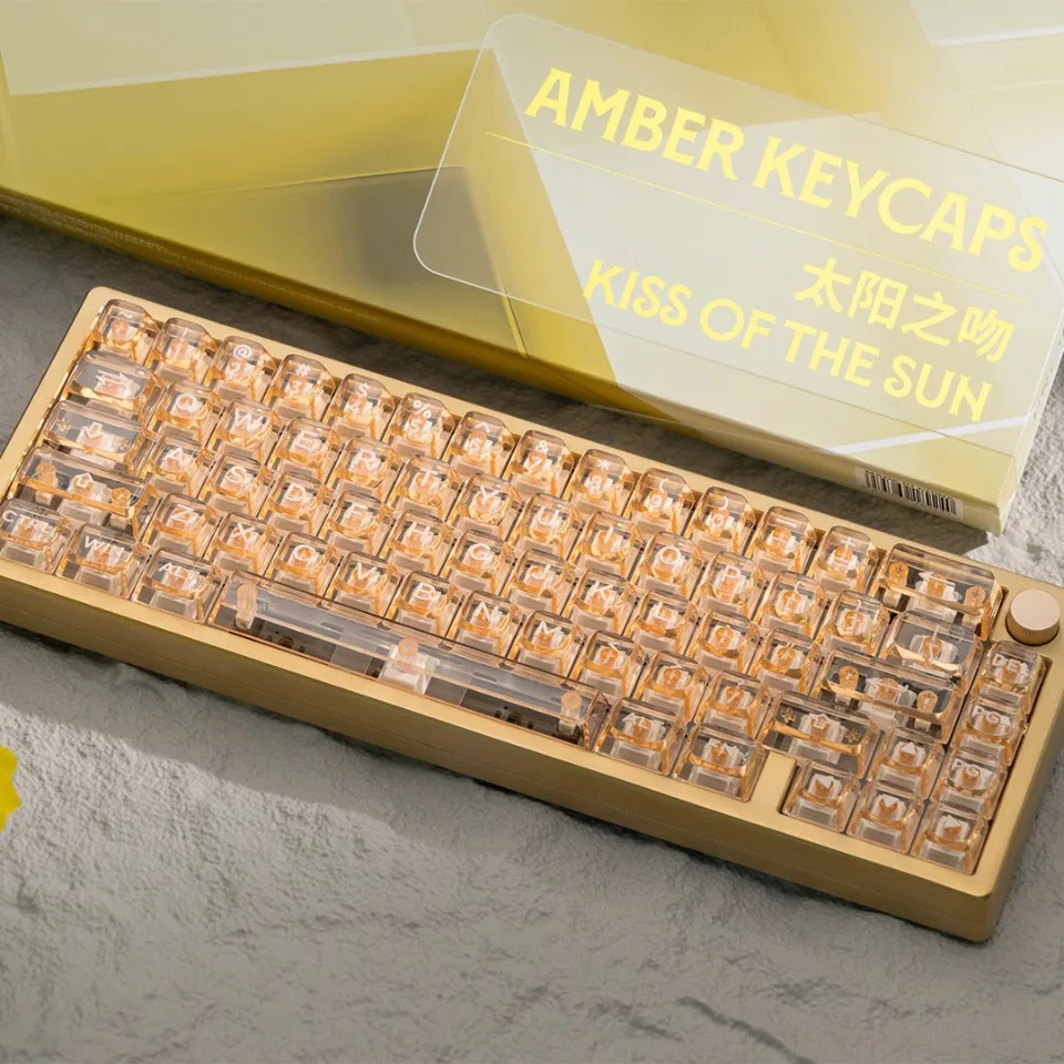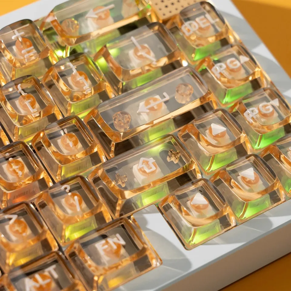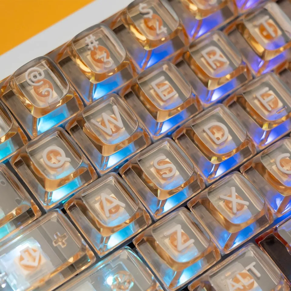Juego de teclas con tema de ámbar de cristal, tapa de teclado translúcida personalizada de PC de 170 teclas, tapa de tecla de juego de perfil OSA para teclado mecánico, regalo