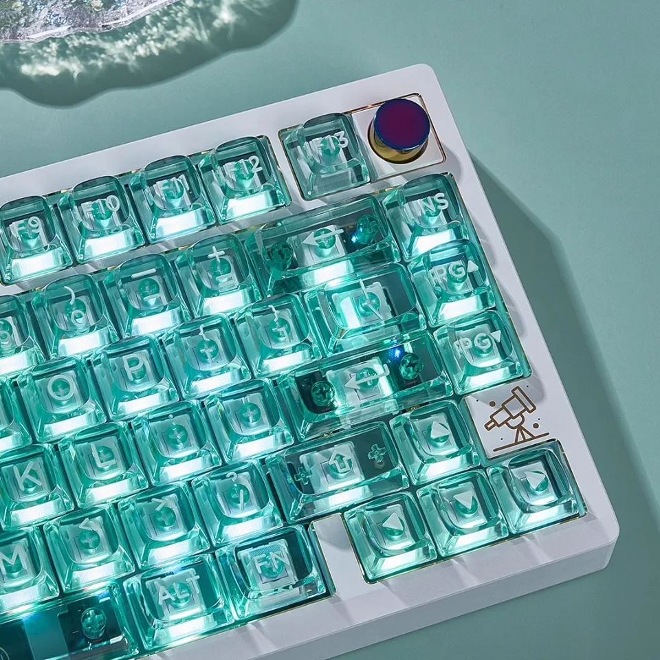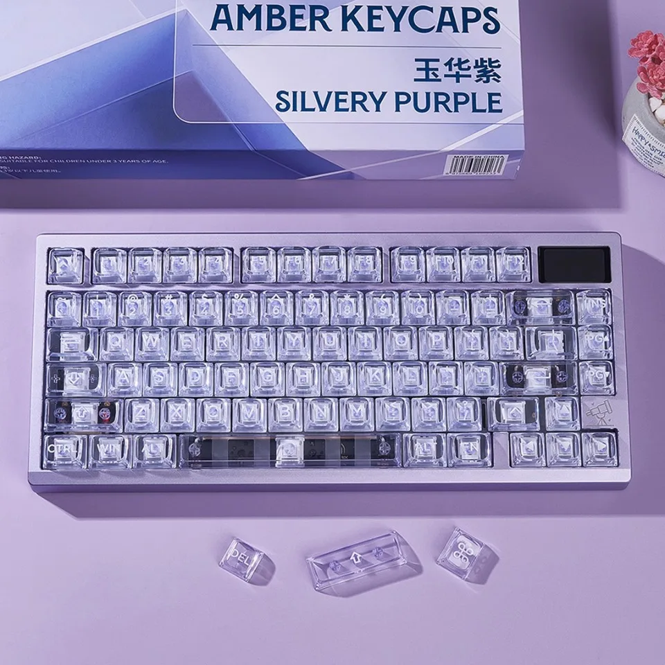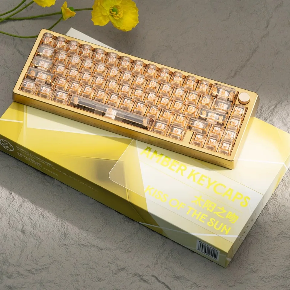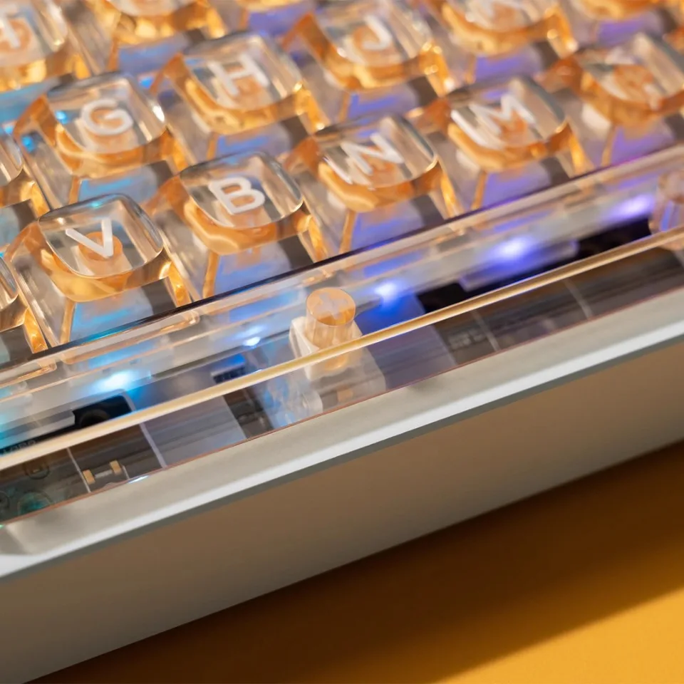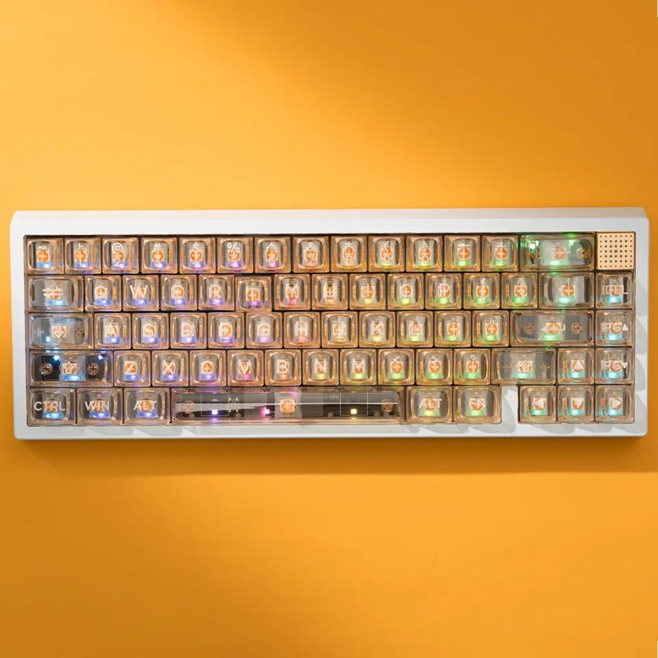 Juego de teclas con tema de ámbar de cristal, tapa de teclado translúcida personalizada de PC de 170 teclas, tapa de tecla de juego de perfil OSA para teclado mecánico, regalo