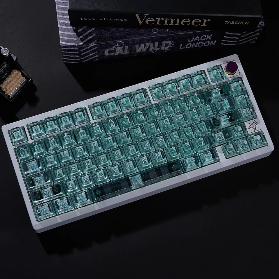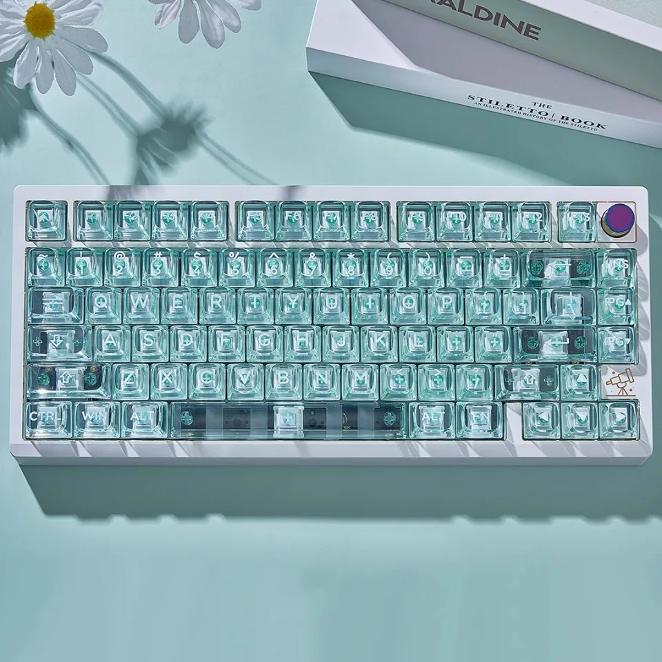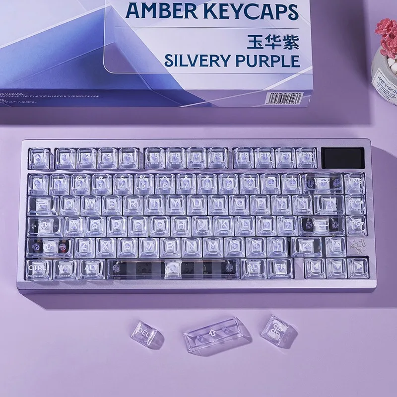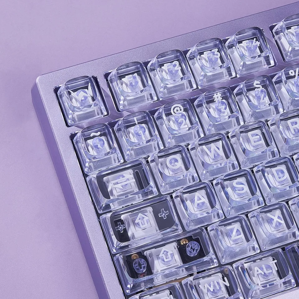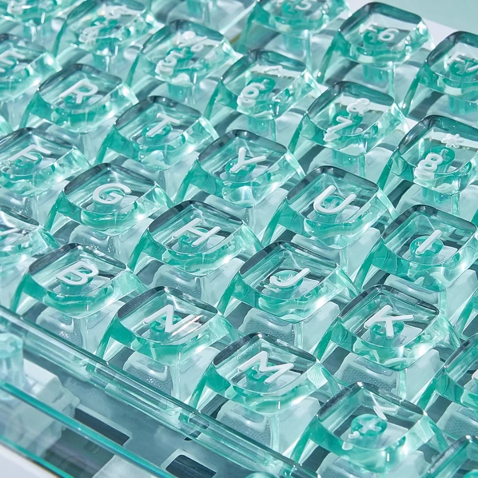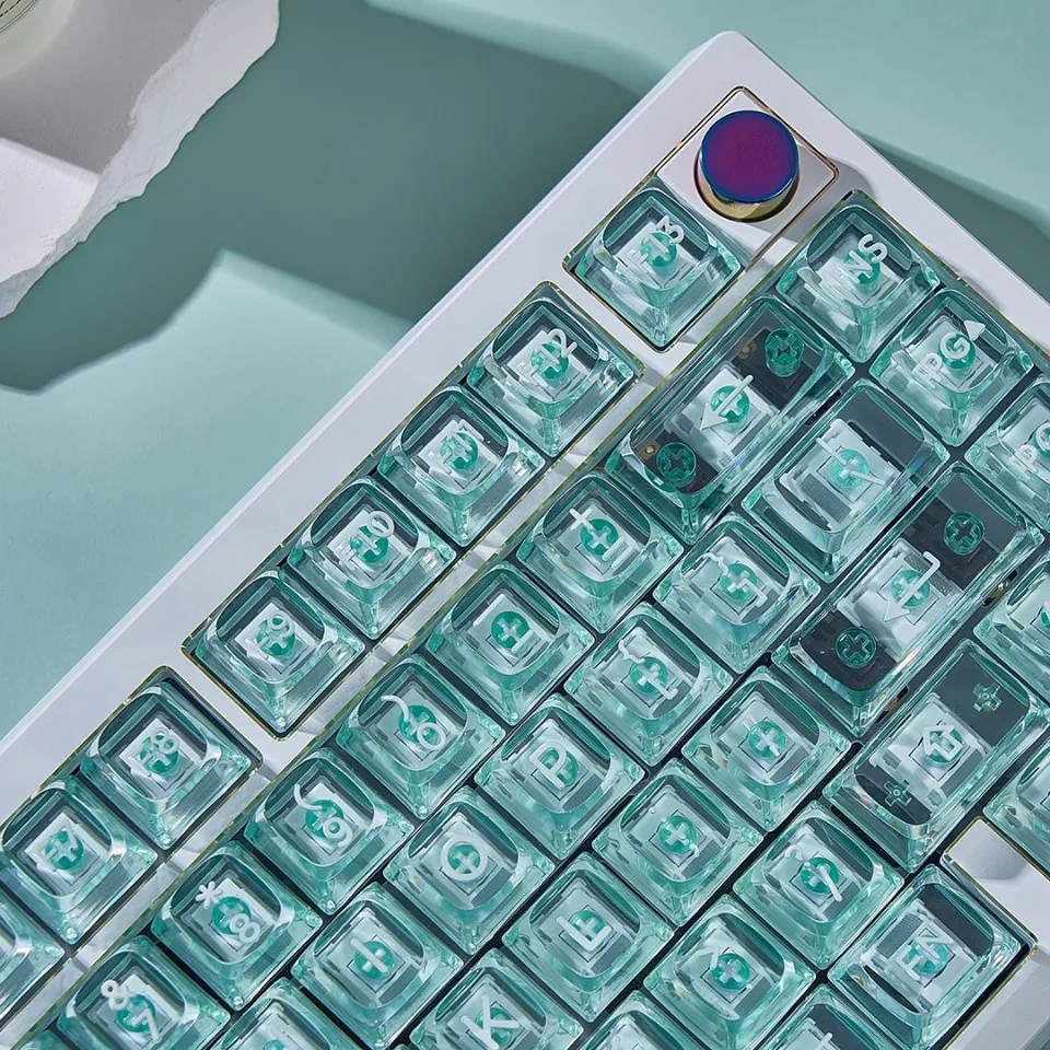 Juego de teclas con tema de ámbar de cristal, tapa de teclado translúcida personalizada de PC de 170 teclas, tapa de tecla de juego de perfil OSA para teclado mecánico, regalo