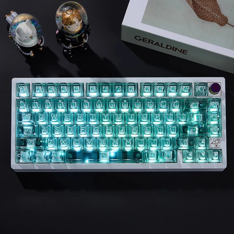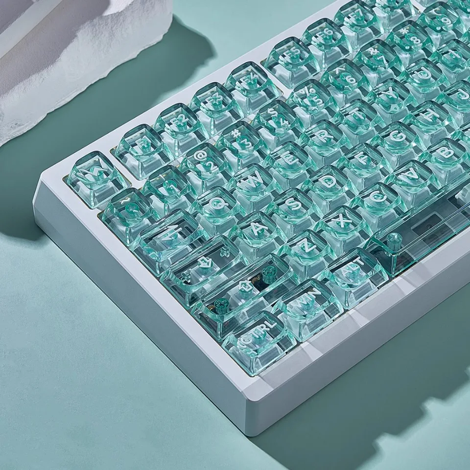 Comprar Crystal Amber Theme Keycap Set, tapa de teclado translúcida personalizada para PC, perfil oso, tapa de tecla de juego para teclado mecánico, regalo, 170 teclas