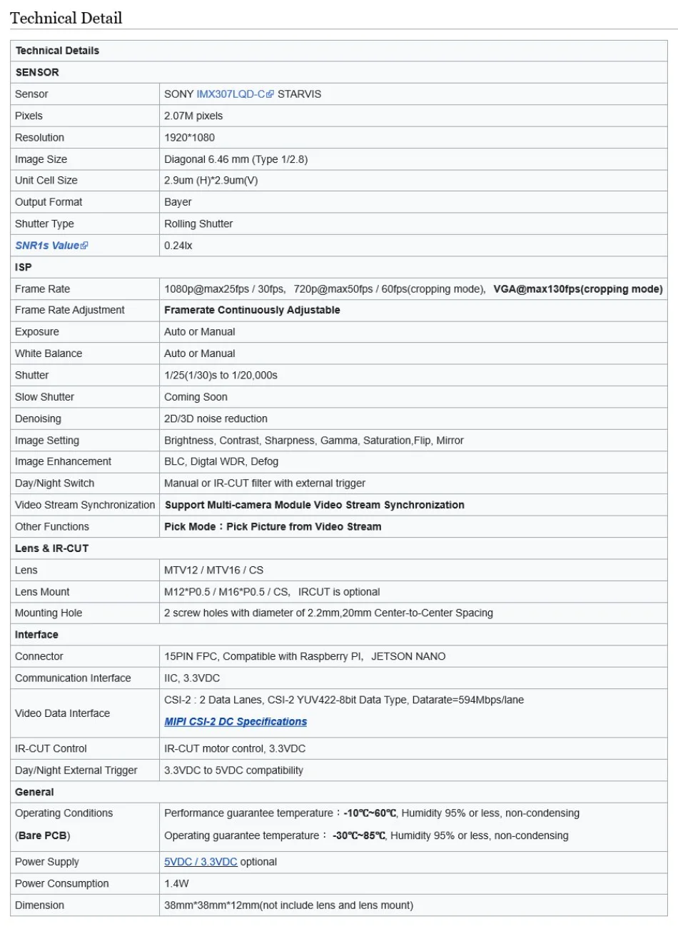+ wiki sobre CS-MIPI-IMX307http://wiki.veye.cc/index.php/CS-MIPI-IMX307_STARVIS_Module + Cómo utilizar el módulo de cámara CS-MIPI-IMX307 en Raspberry Pihttp://wiki.veye.cc/index.php/CS-MIPI-X_for_Raspberry_Pi + Cómo utilizar el módulo de cámara CS-MIPI-IMX307 en NVIDIA Jetson Nanohttp://wiki.veye.cc/index.php/CS-MIPI-IMX307_for_Jetson_Nano + githubhttps://github.com/veyeimaging + sitio webwww.veye.cc + Preguntas y respuestashttp://ask.veye.cc