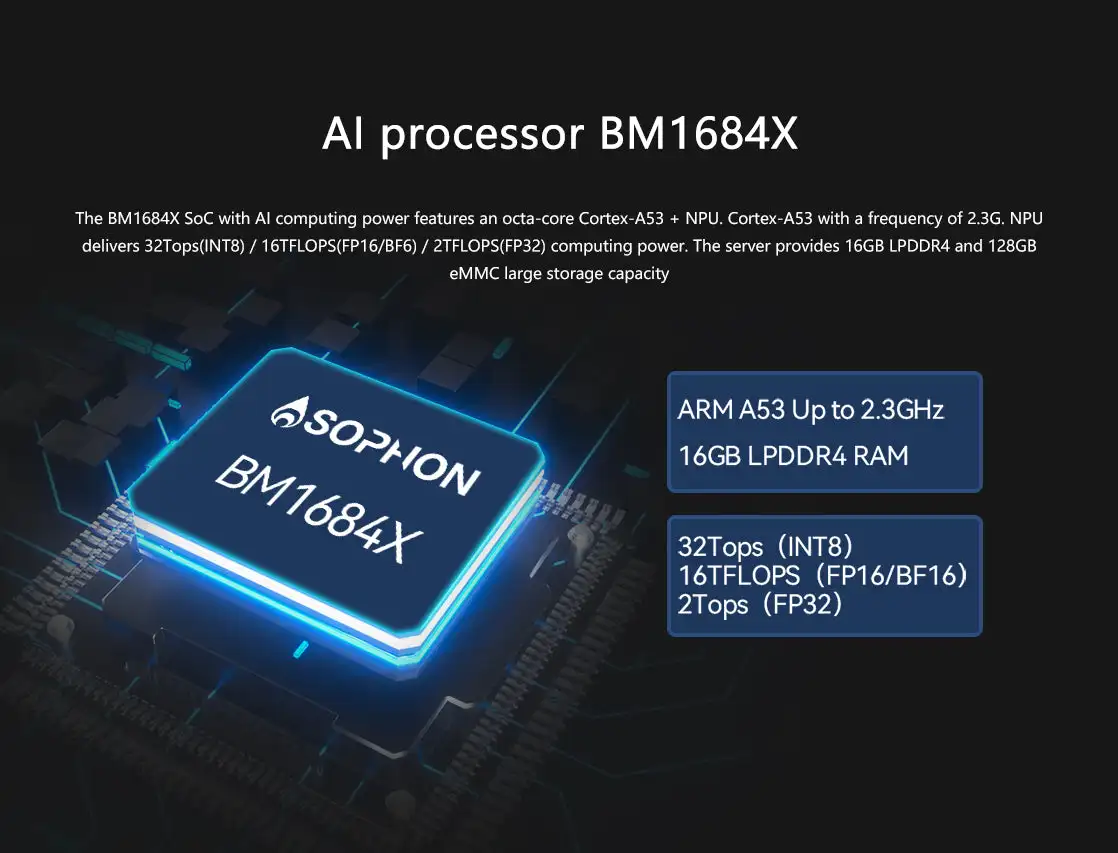 CSA1-N8S1684X,Sophon BM1684x,firefly, servidor de potencia informática AI, 16GB LPDDR4,32GB eMMC,300W ACpower