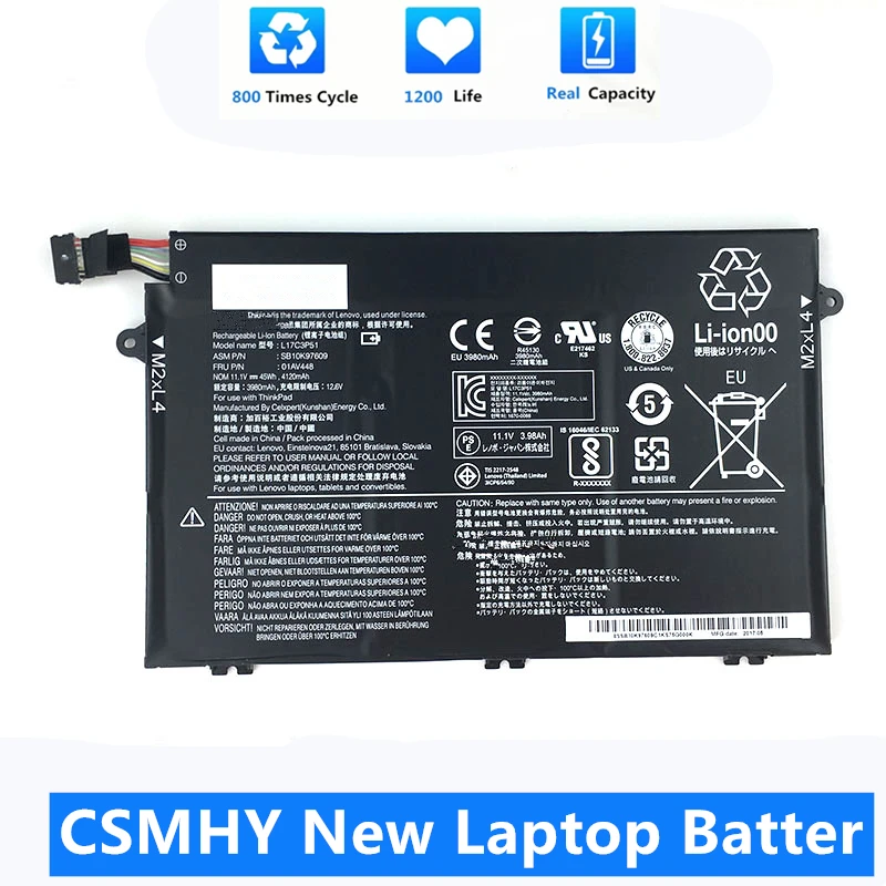 CSMHY nueva batería de ordenador portátil L17L3P51 para Lenovo ThinkPad E15 E480 E490 E495 E580 E585 E590 E595 01AV446 01AV445 01AV448 SB10K97606