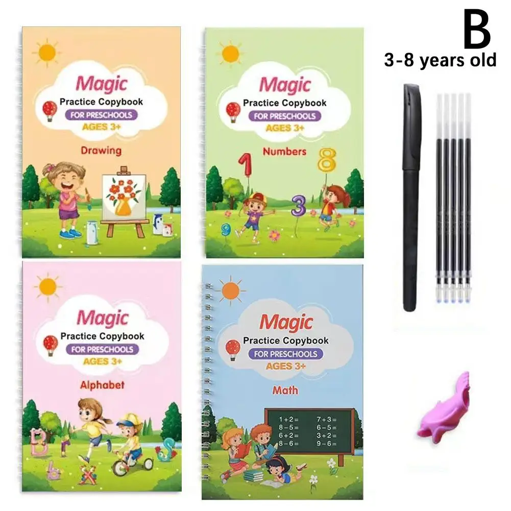 Contenido del producto: El libro de palabras de práctica mágica para niños tiene 1 cartucho de bolígrafo, 5 recambios y 1 portalápices de silicona, los niños pueden practicar el lápiz de lectura para niños durante mucho tiempo, el libro de palabras mágicas puede ayudar a los niños a corregir la acción para sostener el bolígrafo.Libro mágico con ranuras