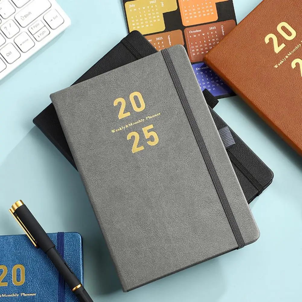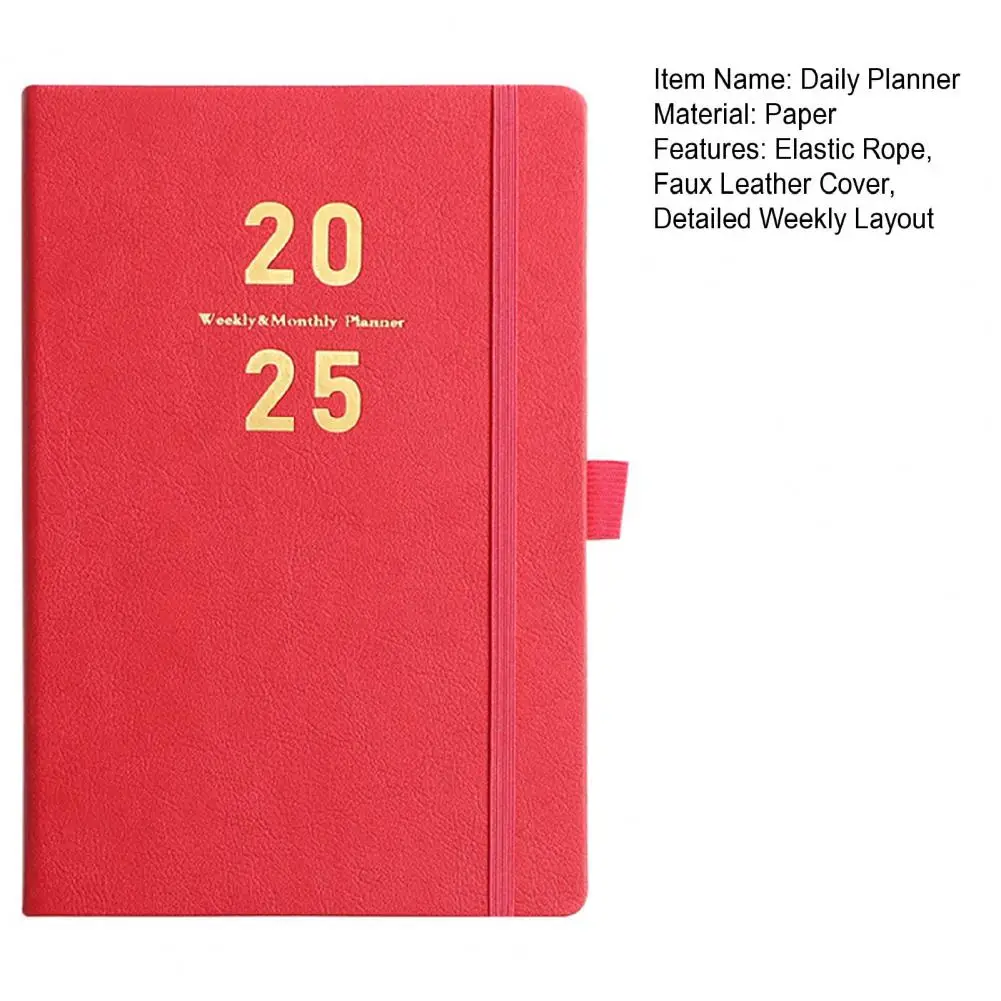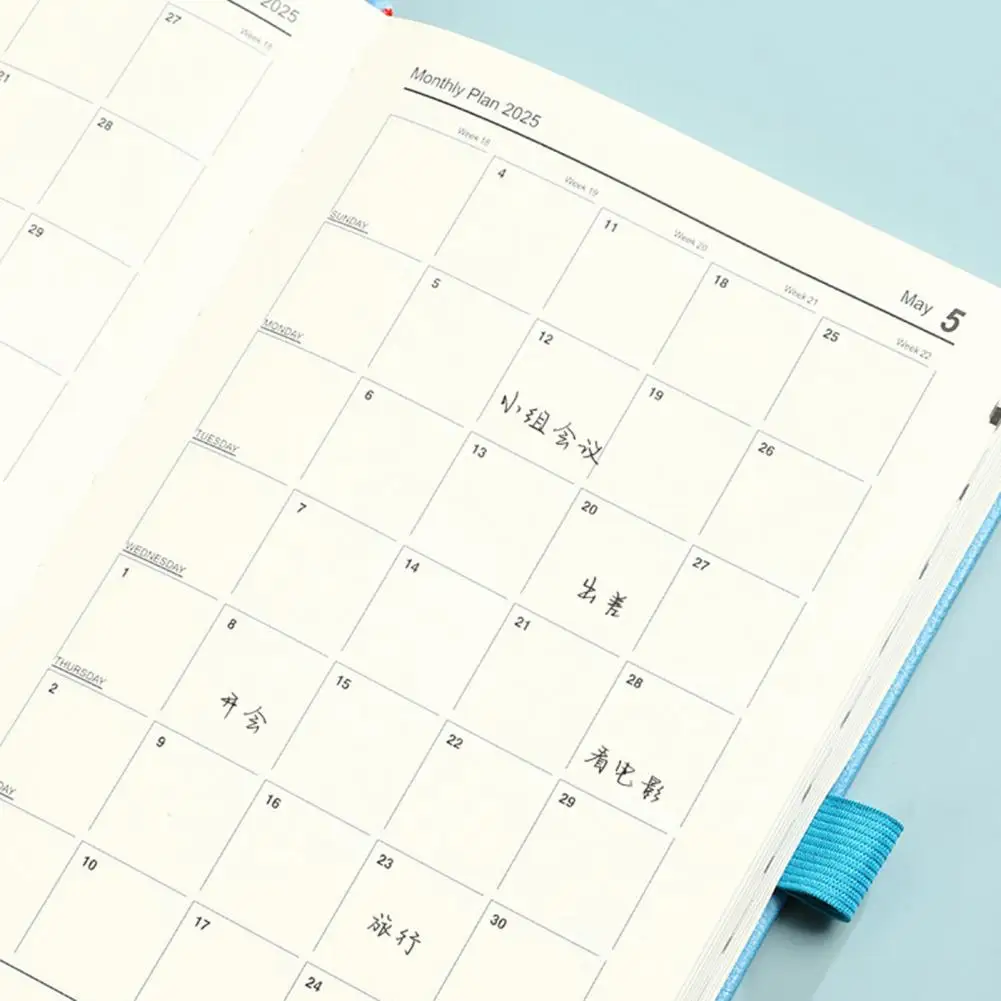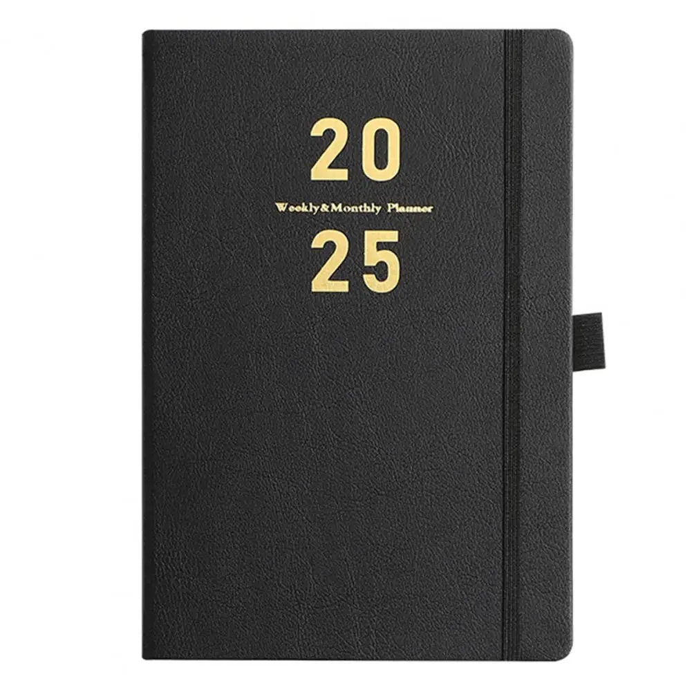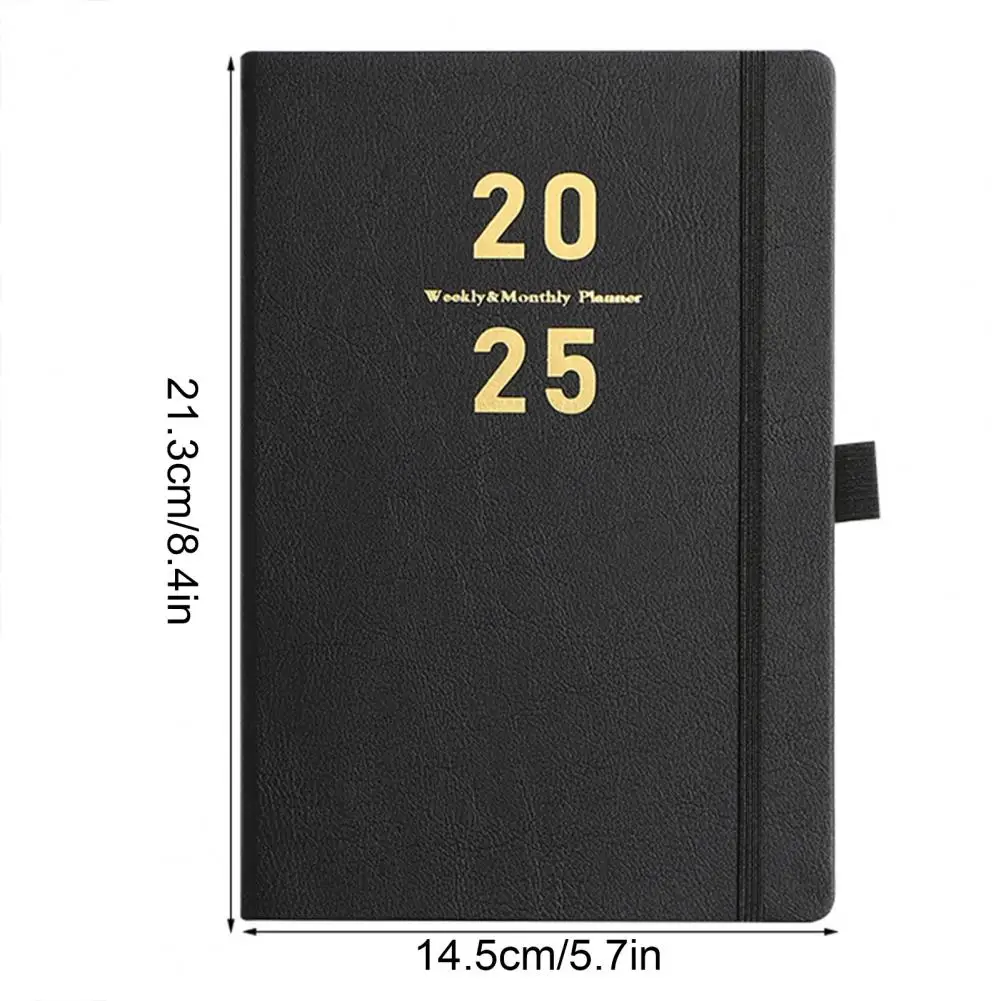 Cuaderno de planificación mensual 2025 Planificador con cubierta de piel sintética para organización durante todo el año Páginas semanales mensuales Cierre elástico