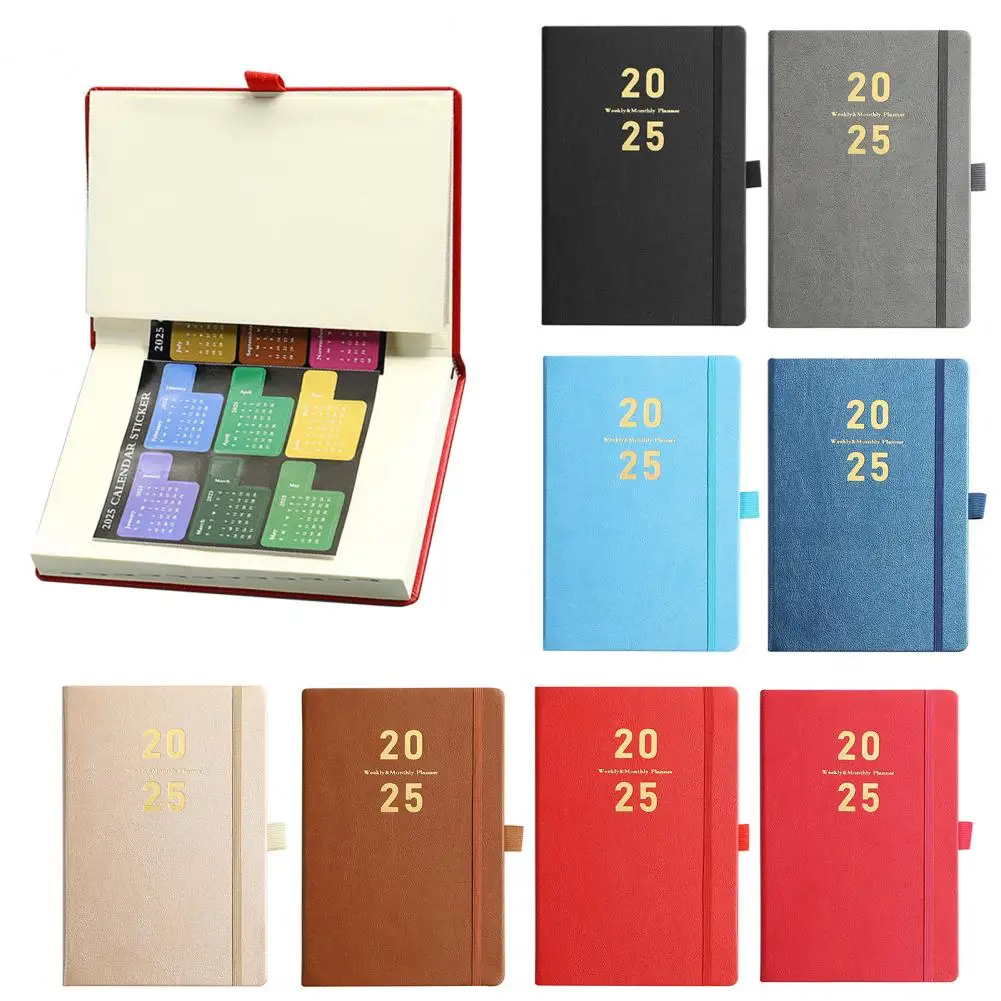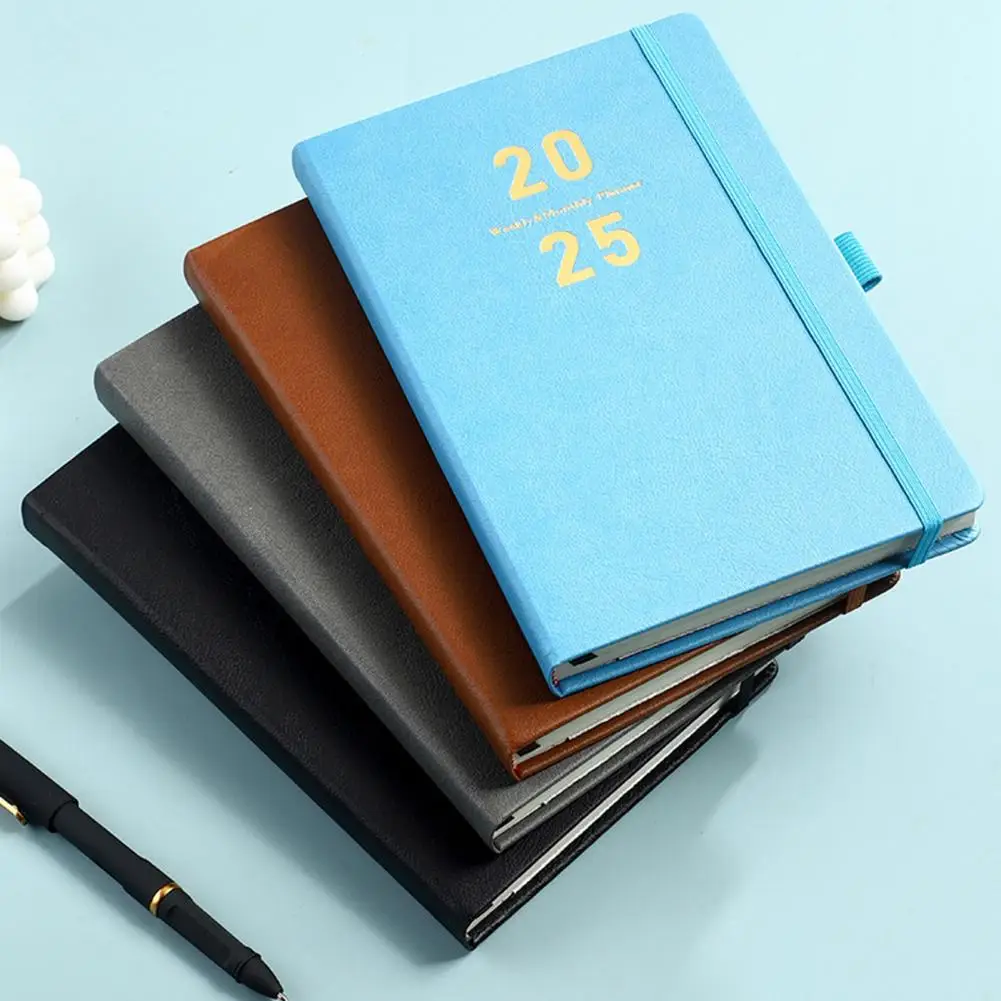 Cuaderno de planificación mensual 2025 Planificador con cubierta de piel sintética para organización durante todo el año Páginas semanales mensuales Cierre elástico