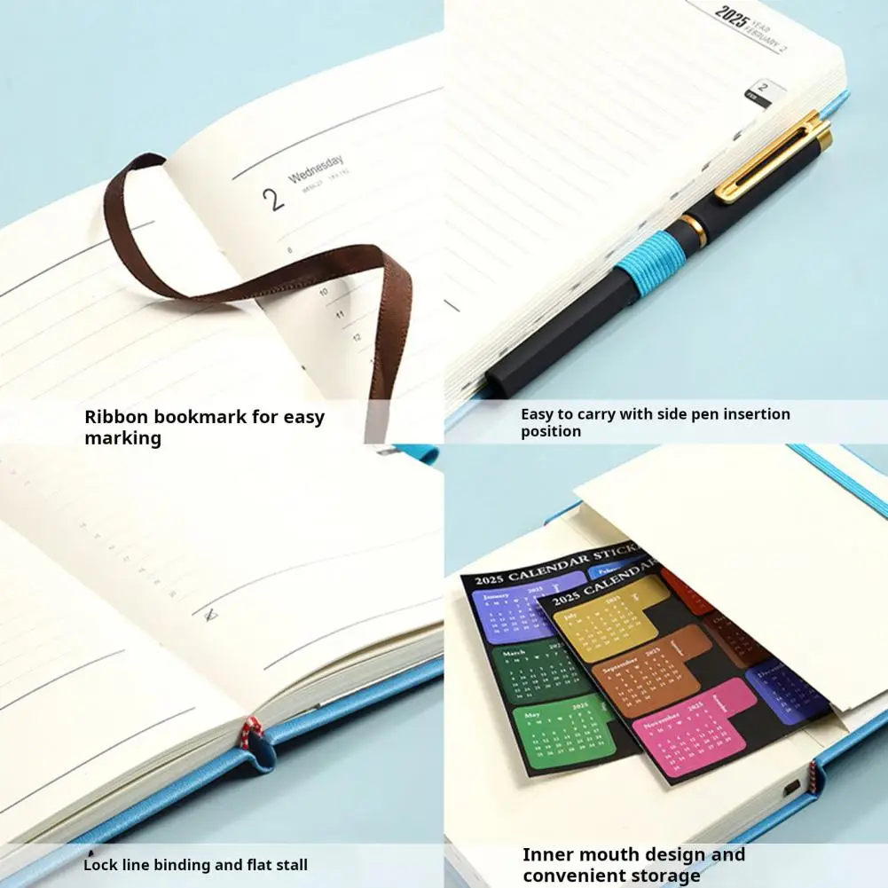 Diseño semanal detallado con amplio espacio para escribir, días festivos resaltados y tareas priorizadas; Cuenta con esquinas redondeadas, correa para bolígrafo y cierre elástico para mayor durabilidad y funcionalidad.